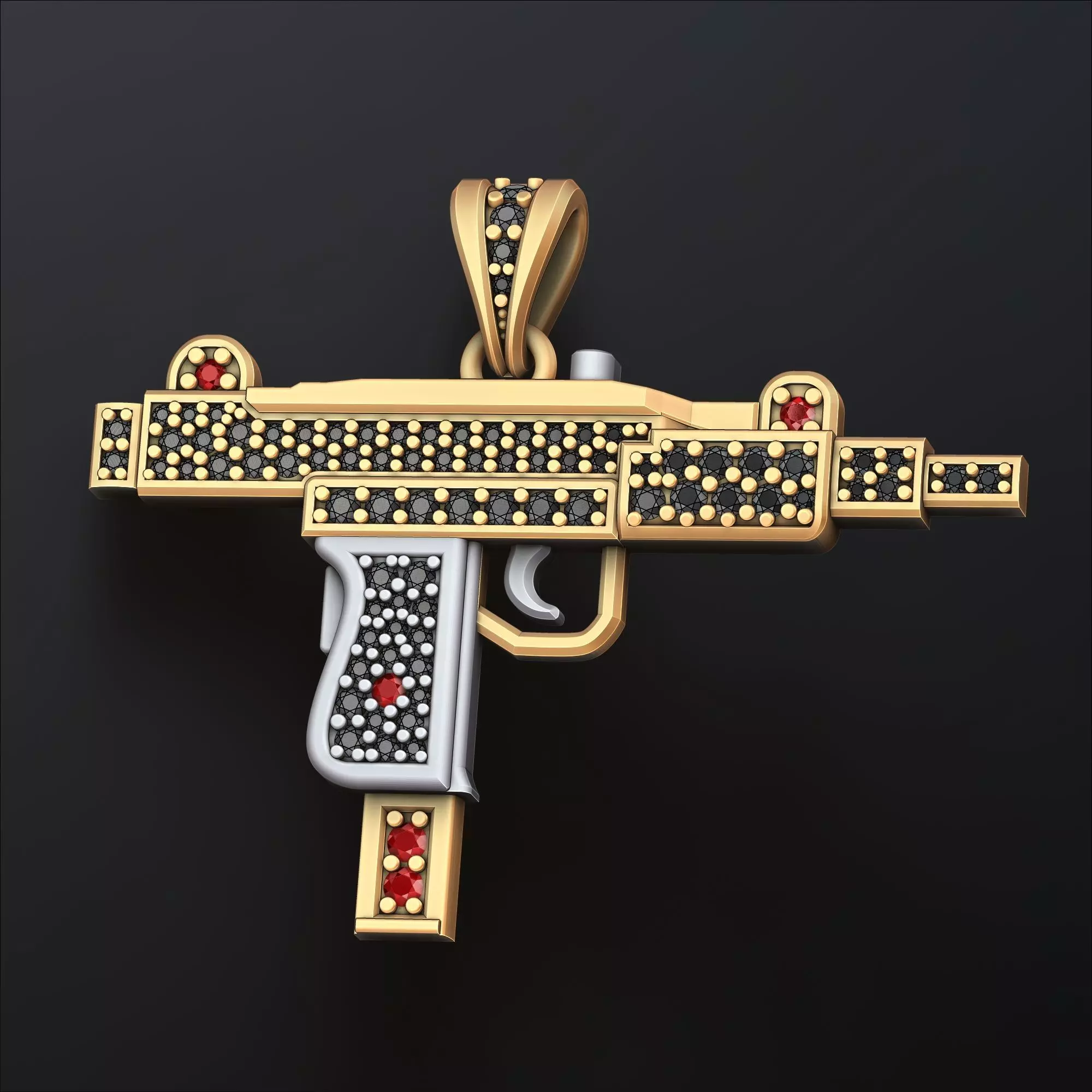 503.Stylized Gun v4 Pendant With Gems 3D Print Model