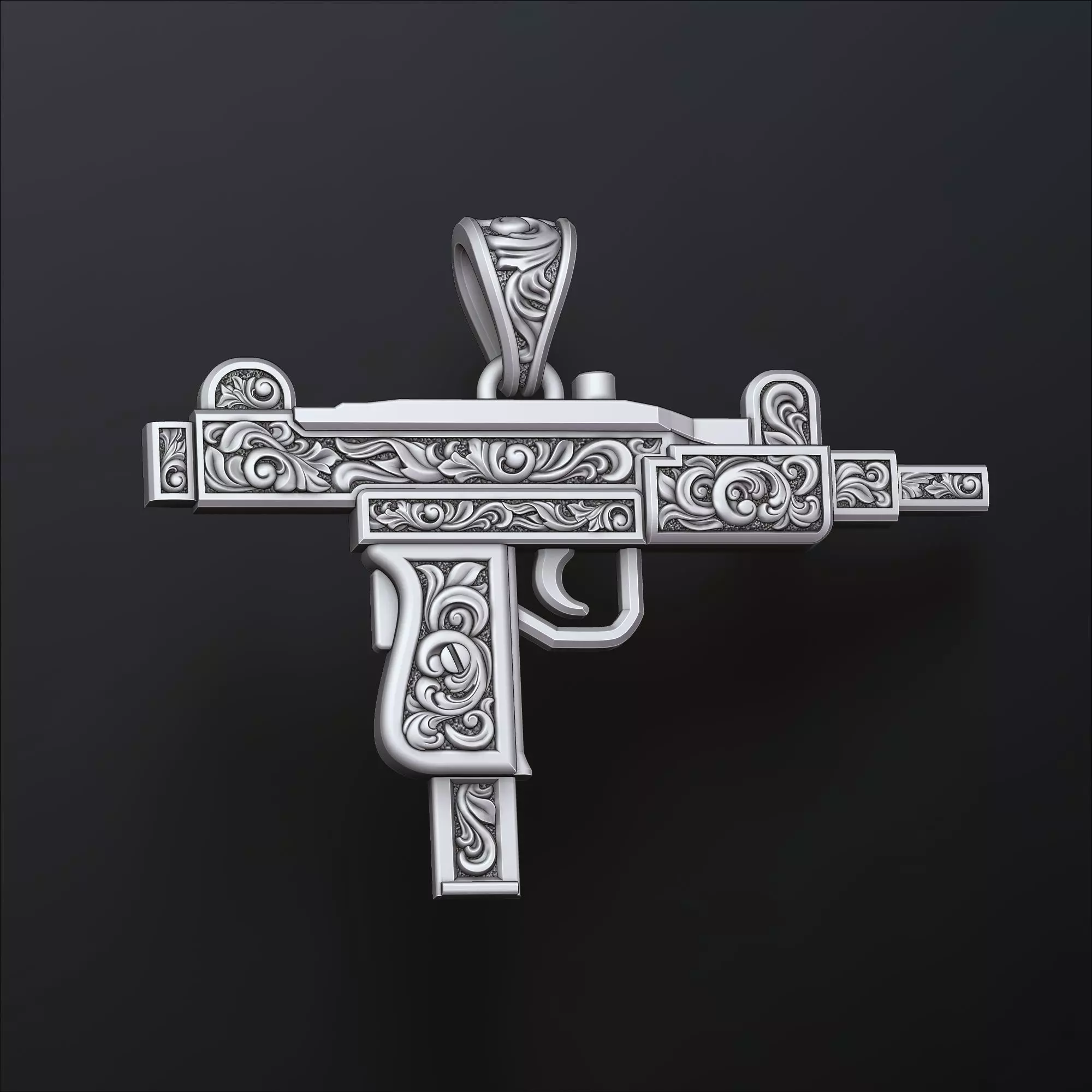 This is a fan-made, stylized gun pendant created purely for artistic and decorative purposes. The design is inspired by generic firearm shapes and does not replicate any real weapon or ammunition.
