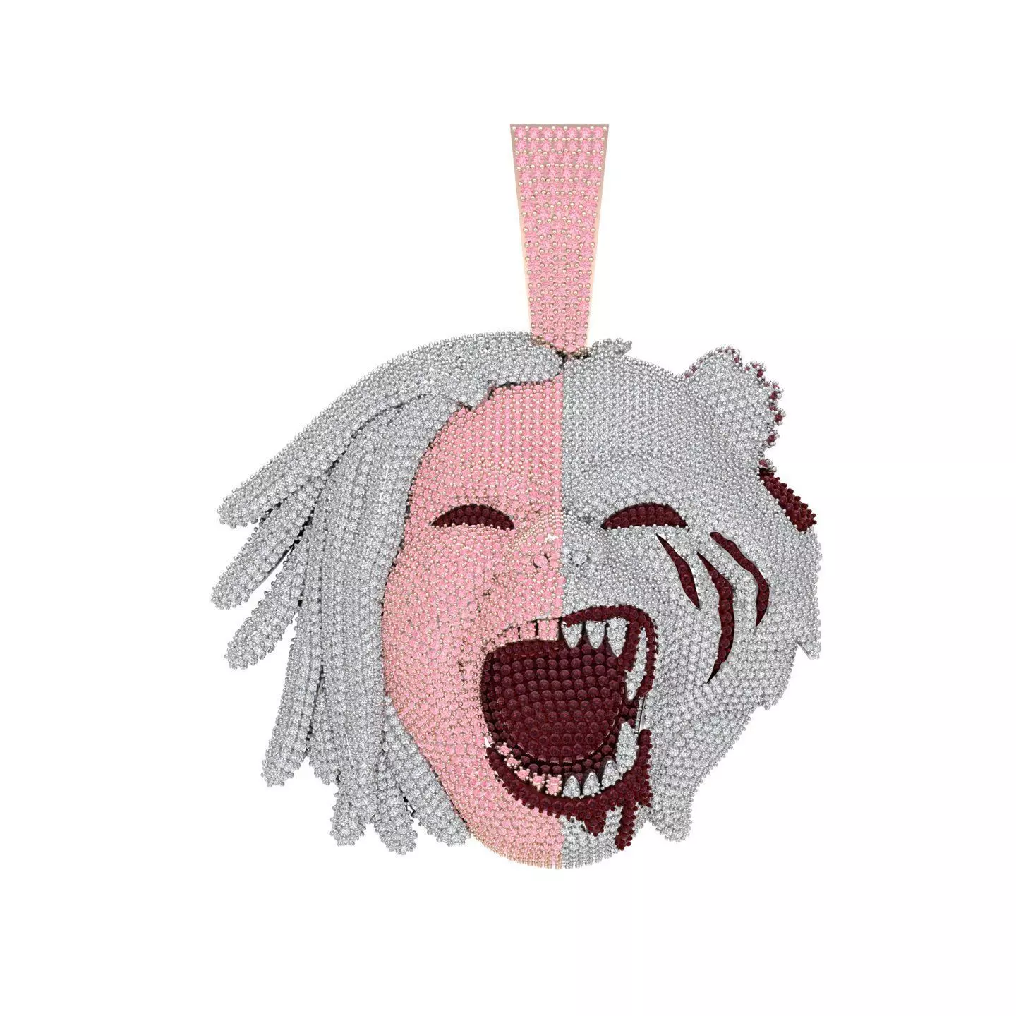 harming Half Man and Half Beast Round Cut Diamond Pendant Hiphop 3D print model