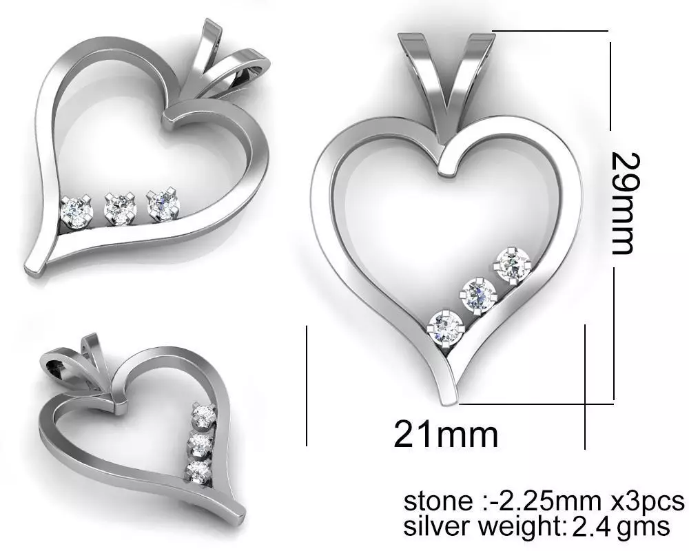 Heart design diamond pendant for women 3D print model
