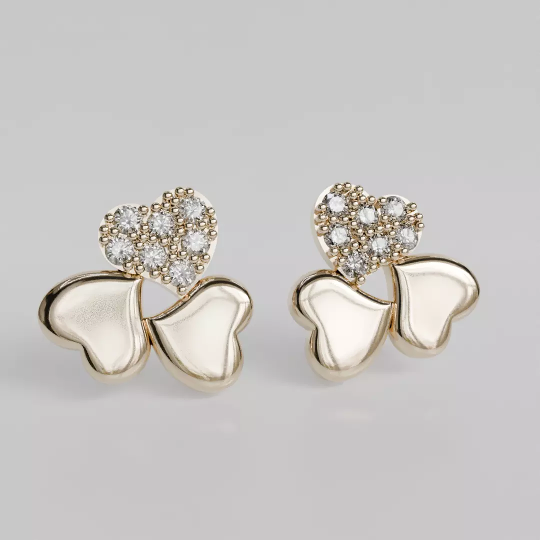 3-leaf clover in the shape of a heart 7 diamond inlays measuring 1mm in diameter7.70 mm in total diameterApproximate weight of 1 gram per pair of earrings in 18-carat gold
