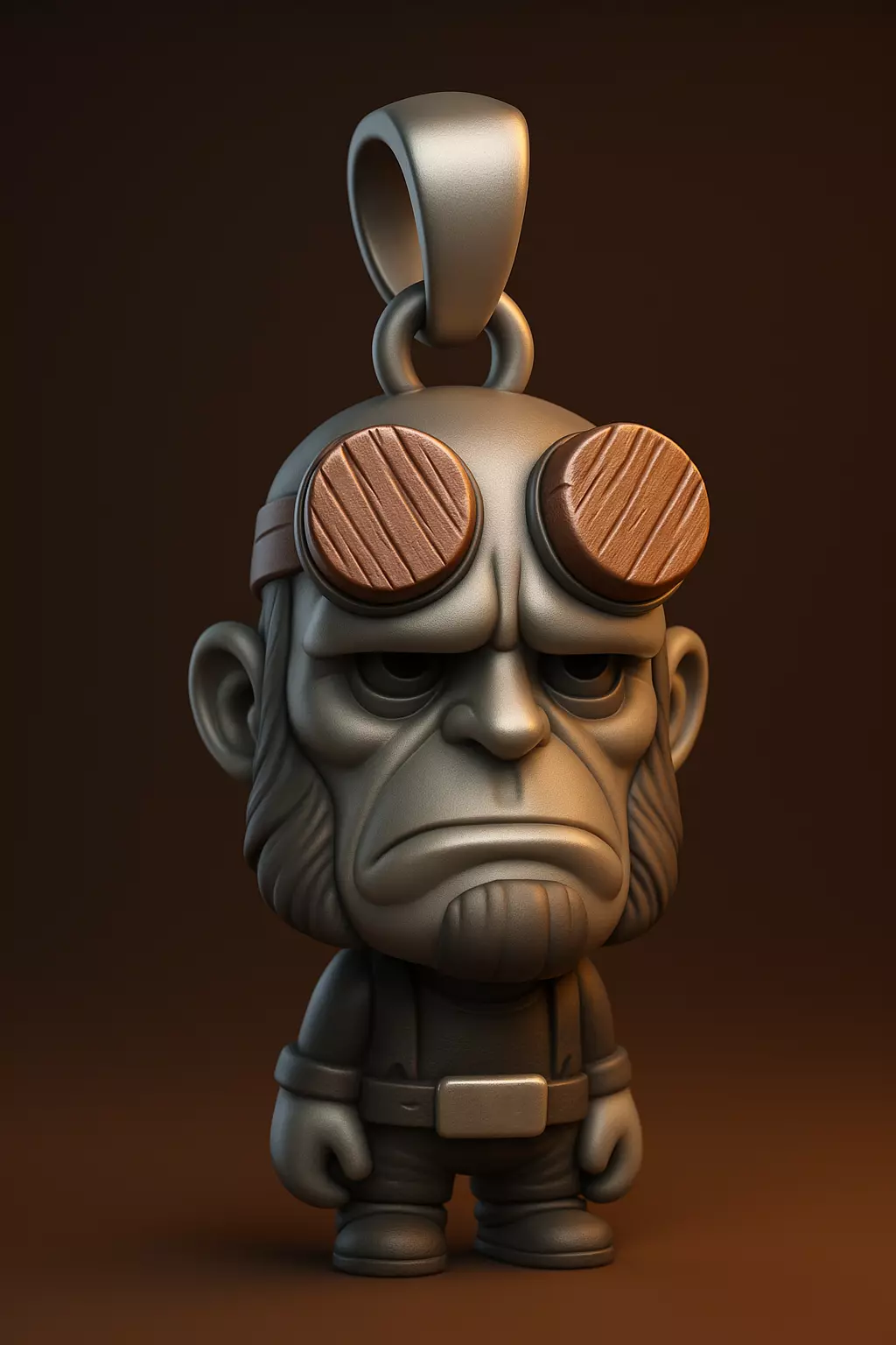 Summon a legend with this masterfully stylized Hellboy Chibi 3D Model. This pendant reimagines the world’s greatest paranormal investigator in a bold, designer toy aesthetic. The design captures Hellboy's grizzled expression, his signature mutton chops, and the circular stumps of his filed-down horns with high-definition clarity. Engineered for professional jewelry production, the model features smooth, clean surfaces ideal for a high-polish finish, with recessed details optimized for enamel work or dark oxidation.