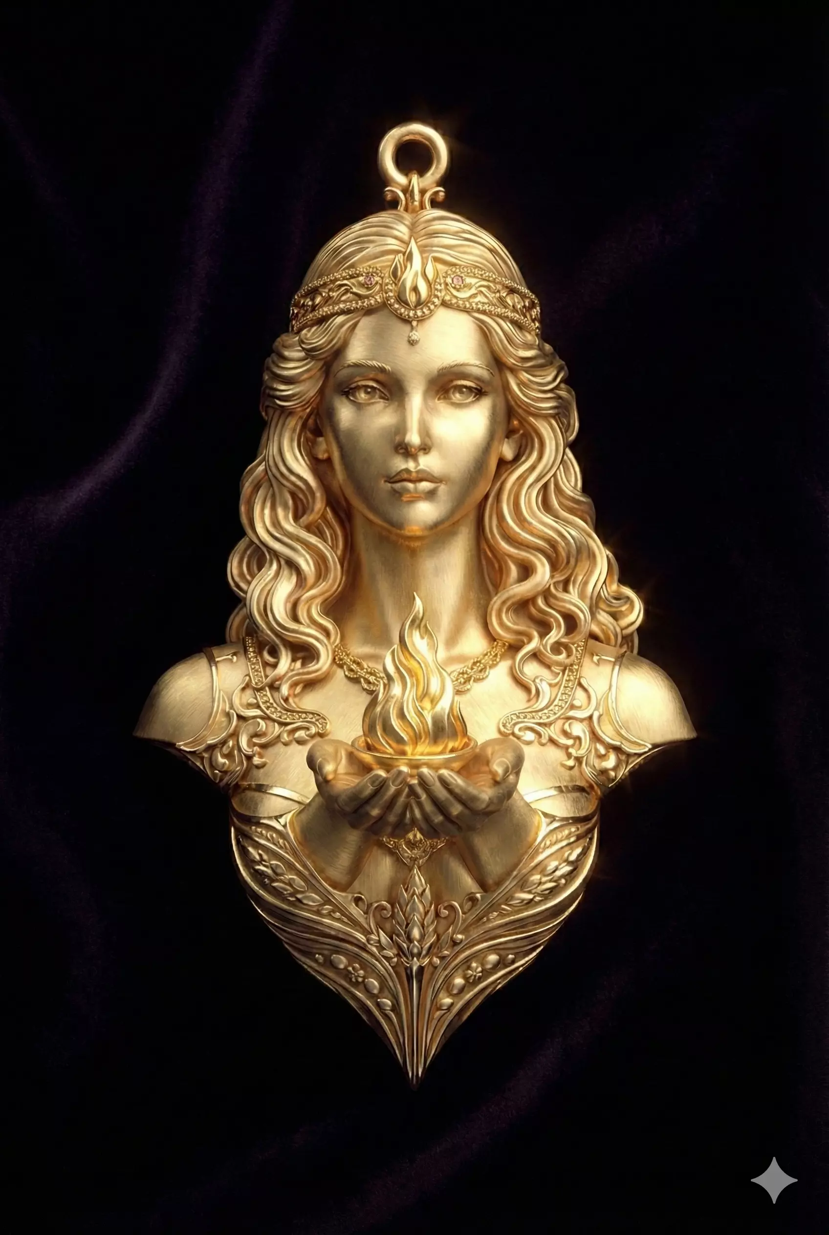 This is a detailed Hestia goddess jewelry model designed as a wearable pendant and prepared for professional production.The model is ready for 3D printing and casting, and all dimensions, weight, proportions, and surface quality are clearly shown in the images.