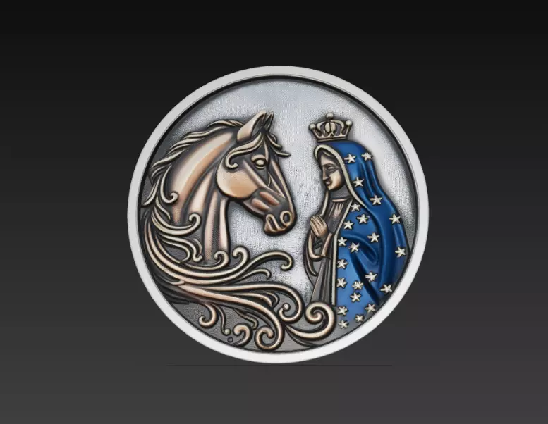 This is a high-quality horse and saint pendant 3D model, designed for religious jewelry production, 3D printing, and casting. The design combines the strength and symbolism of the horse with a devotional saint figure, creating a meaningful piece ideal for spiritual jewelry and symbolic accessories.