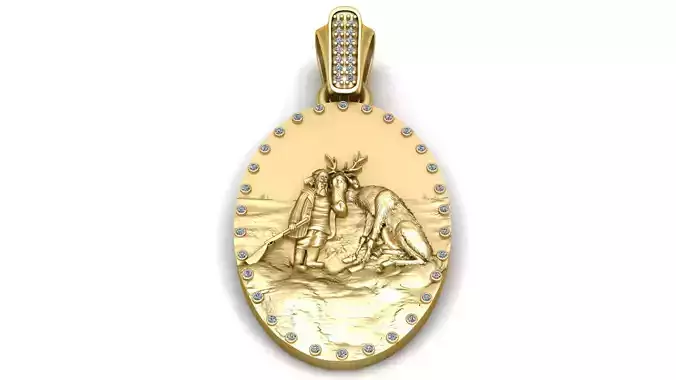 Hunter and Deer Scene Pendant 3D Printable MODEL 3D print model