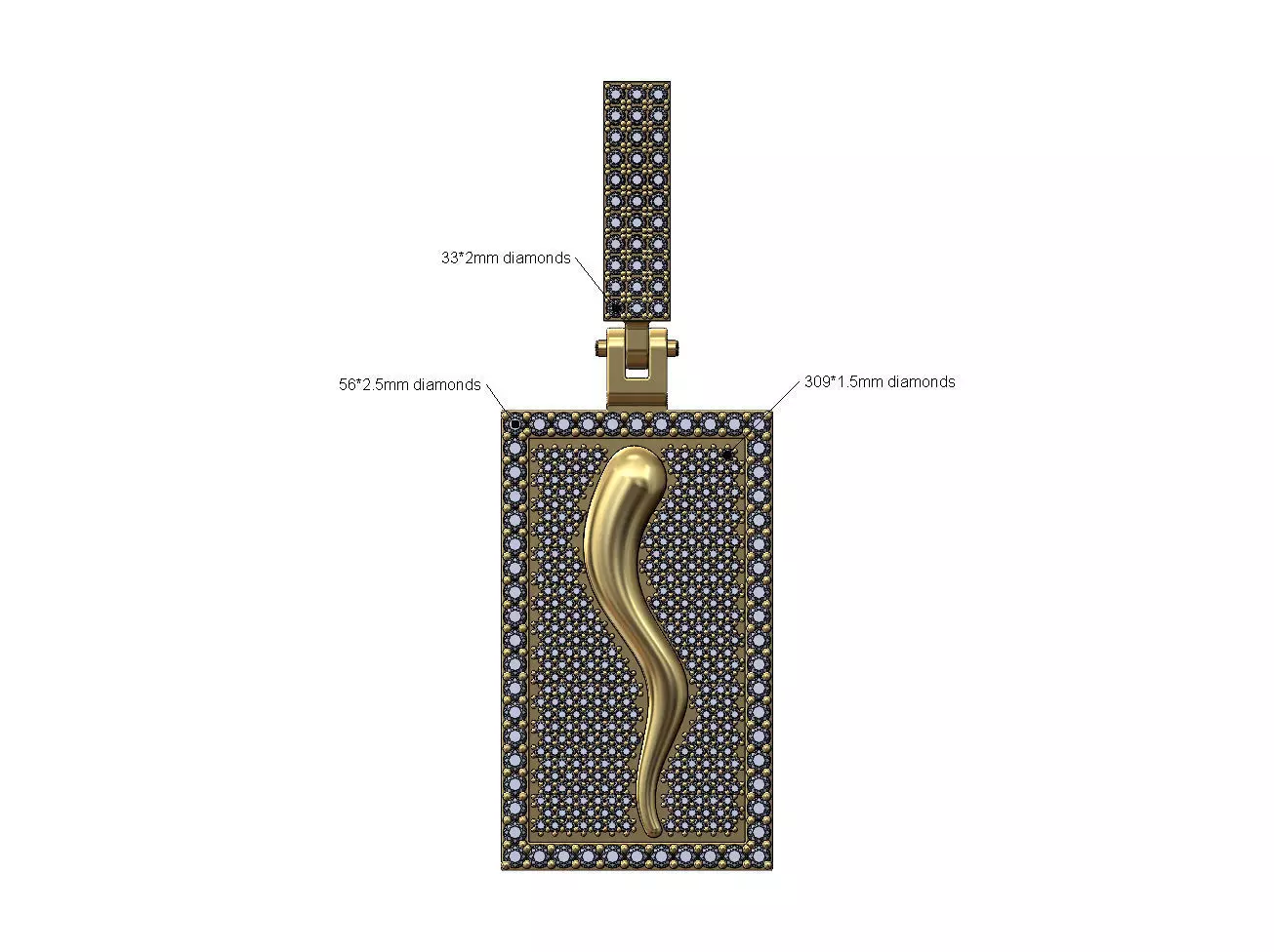 Iced diamond set italian horn pendant 3D print model