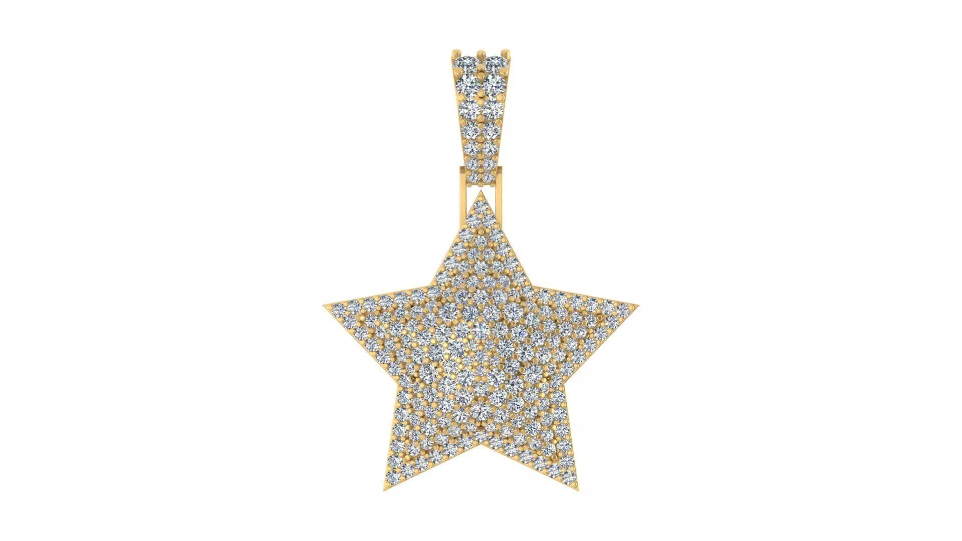 The Iced-Out 3D Star Diamond Pendant is a bold and stylish piece designed for individuals who love to shine. Featuring a fully pavé diamond setting, this pendant is a symbol of success, ambition, and power. The three-dimensional domed structure adds a unique and luxurious appeal, making it an exceptional addition to high-end jewelry collections.