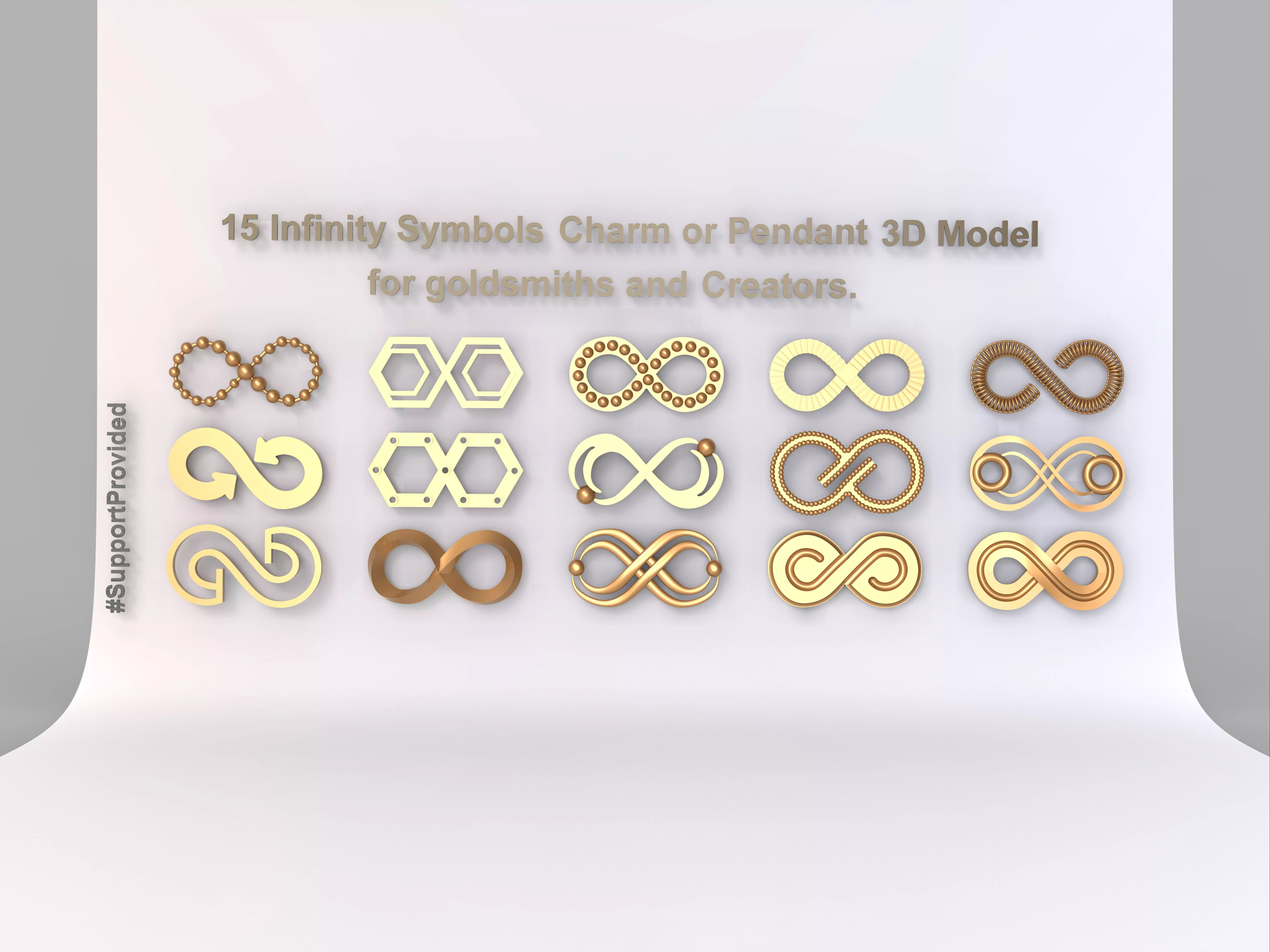 A complete collection of 15 infinity symbol jewelry designs, created for professional jewelers and 3D printing workflows.Each model is production-ready and optimized for casting and resin printing.