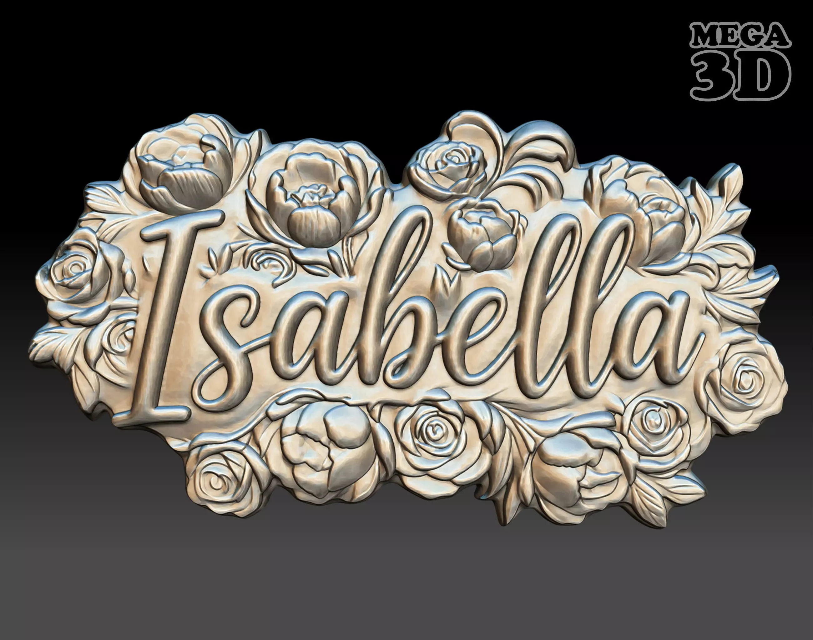 - This product contains 1 Bas-relief Custom Name Floral Design.