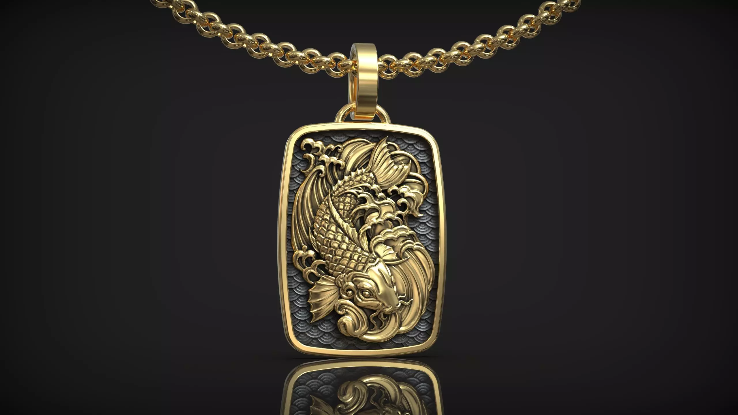 This 3D model features a rectangular pendant depicting a Koi fish swimming among stylized waves, inspired by traditional Japanese art and symbolism. The design captures the grace, strength, and determination of the koi - a symbol of perseverance, prosperity, and spiritual growth.