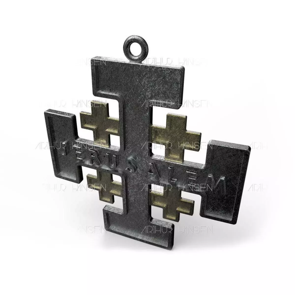 Pendant Jerusalem Cross design. Model is ready for Rendering CNC and 3D Printing. Model made without shrinkage factor.Only STL File has the sprue for casting. Model from two parts: body and small crosses