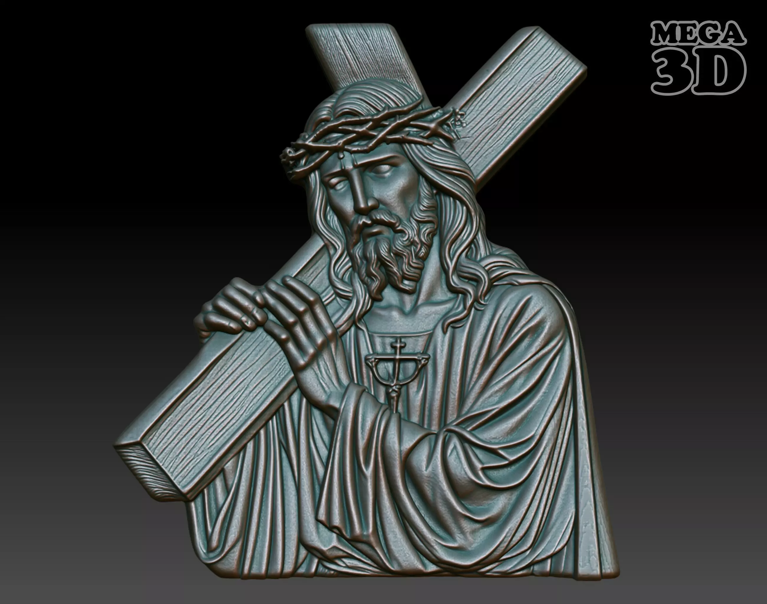 jesus, carrying, the cross, pendant, medal, necklace, cnc, printing, relief, decor, jewelry, artcam, art, engraving, carved, basrelief, woodworking