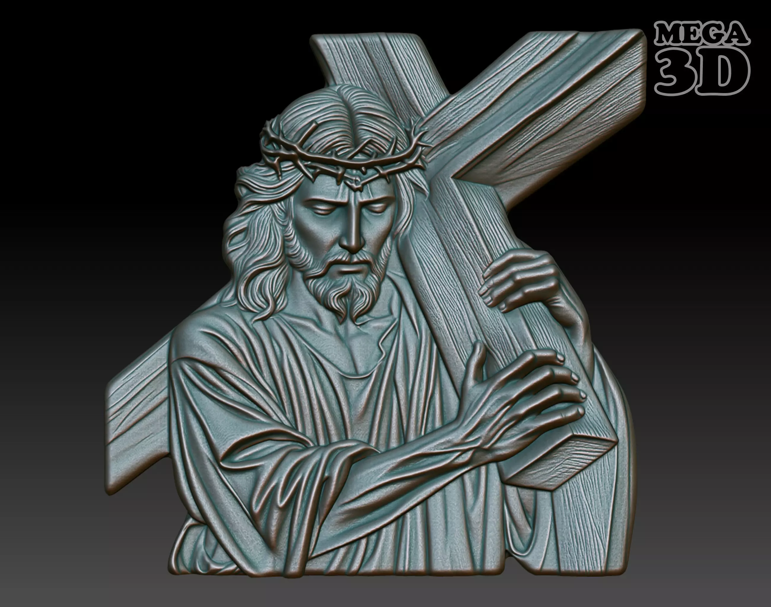 jesus, carrying, the cross, pendant, medal, necklace, cnc, printing, relief, decor, jewelry, artcam, art, engraving, carved, basrelief, woodworking