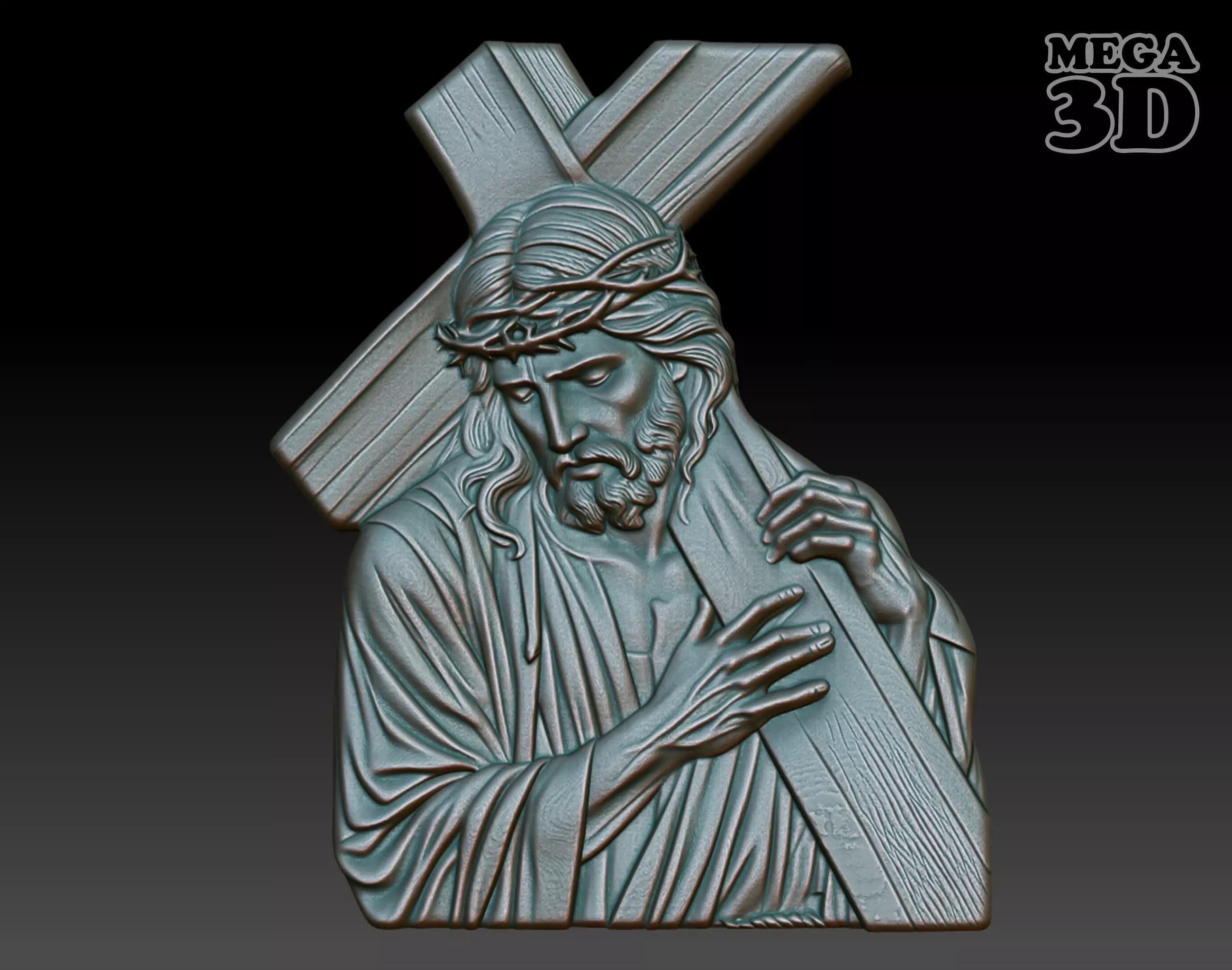 jesus, carrying, the cross, pendant, medal, necklace, cnc, printing, relief, decor, jewelry, artcam, art, engraving, carved, basrelief, woodworking