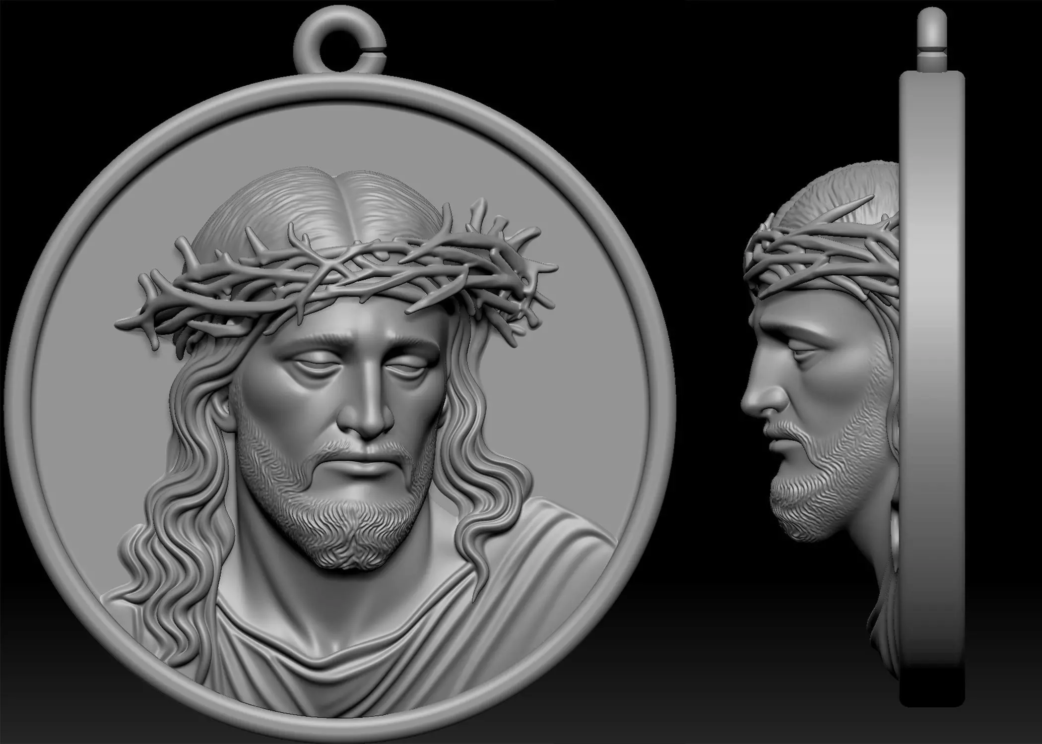 Jesus Christ Crown of Thorns Pendant – 3D Printable Religious Medallion for Gold & Silver Jewelry