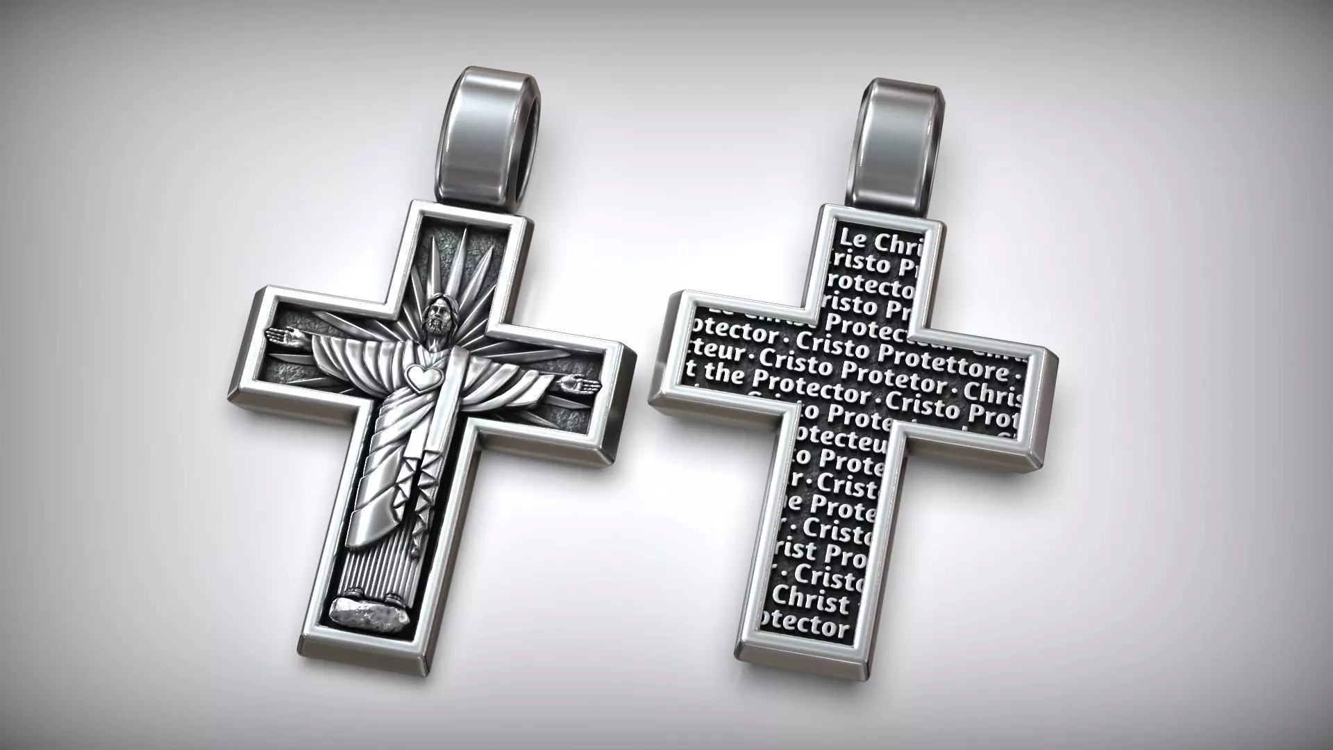 Jesus Christ The Protector Statue Christian Cross Pendant