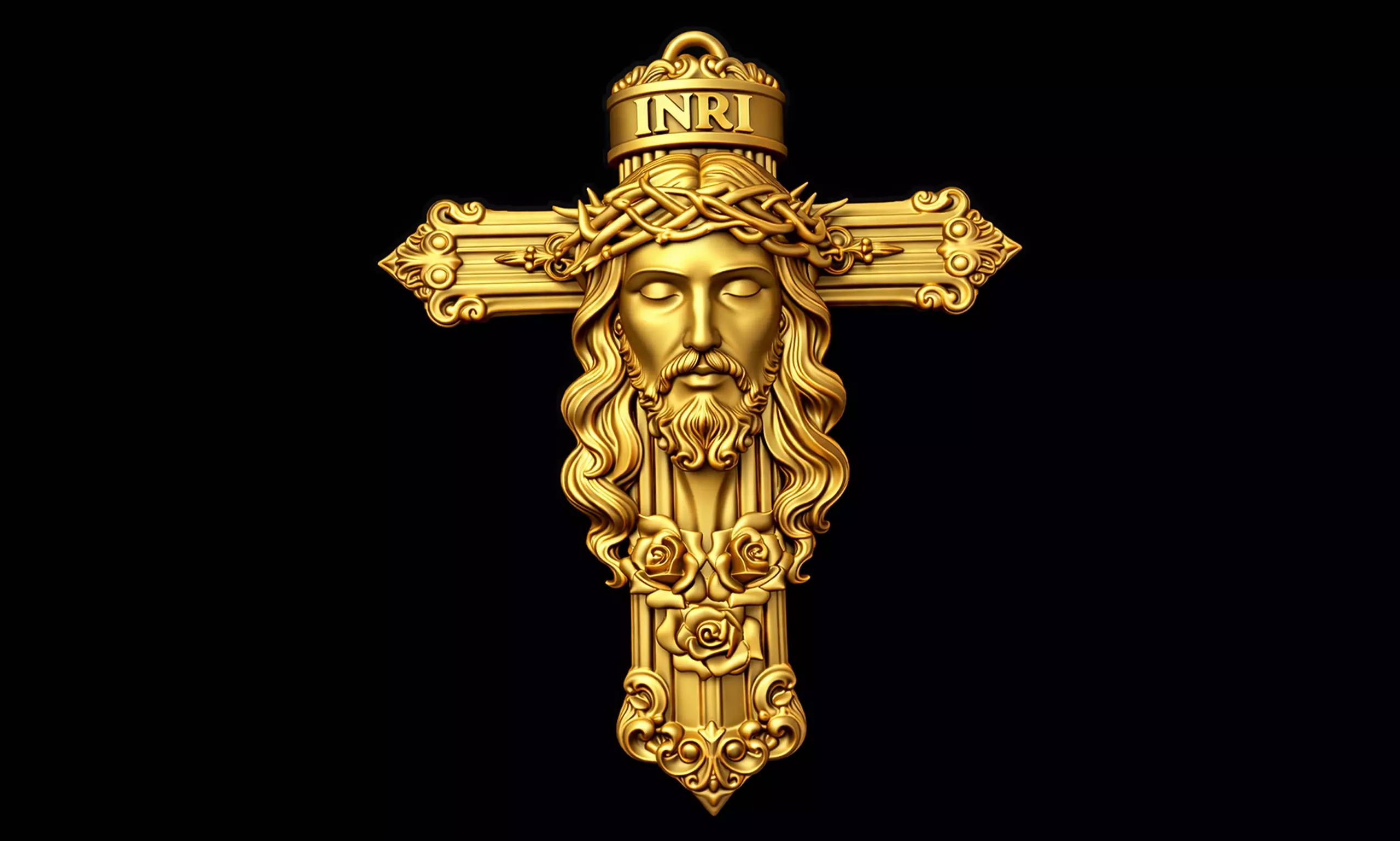Production-ready 3D model of a Jesus INRI Crucifix Pendant. Jesus Pendant Engineered with a solid, watertight mesh for flawless jewelry casting, CNC engraving, and resin 3D printing. Ideal for crafting high-quality Catholic accessories and devotional gifts.