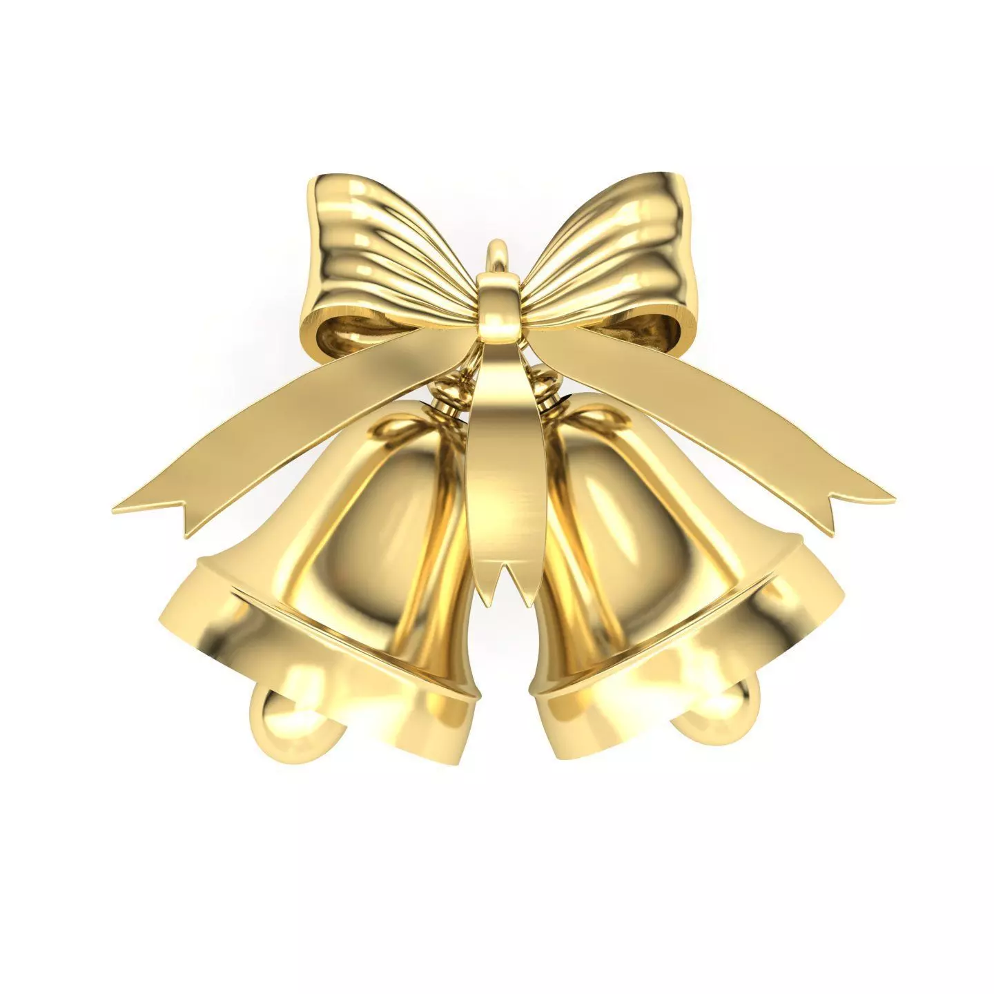 The surfaces of the bow, rings and bell are modeled with high precision to achieve a realistic metallic look.