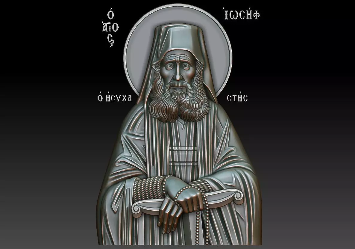 3d model Orthodox icon Saint Joseph the Hesychast (Greek: Ιωσήφ ο Ησυχαστής,Ἰωσὴφ ὁ Σπηλαιώτης,Ио́сиф Исиха́ст,Ио́сиф Молча́льник,Ио́сиф Пеще́рник ) . For milling on CNC machines or 3d printing. Can be used in the production of souvenirs, furniture, jewelry. Files in stl format, for import to artcam, rhinoceros, 3ds max, etc. You can scale the model to any size you need.3d model Orthodox icon Saint Joseph the Hesychast, in high-detail 3D relief Suitable for CNC milling and 3D printing STL format, scalable to any size Compatible with ArtCAM, Rhinoceros, 3ds Max Ideal for religious souvenirs, furniture, jewelry, and interior décor This versatile model is a valuable tool for anyone looking to create beautiful, precise religious designs across a wide range of applications.This model is perfect for artisans and manufacturers creating religious-themed items such as iconography, church décor, or custom gifts. Its high level of detail ensures precise output when milled or 3D printed, maintaining a professional finish. It’s also ideal for woodworking, metal engraving, or resin casting.Ideal for CNC carving, 3D printing, and laser engraving. This model is perfect for creating religious wall plaques, personal devotional items, church décor, and spiritual gifts.