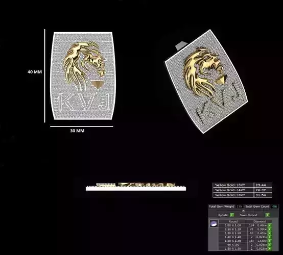 KVJ-Logo Pendant3D Printable458 stones 2.85 ct10k 23.44 grams14k 26.37 grams18k 31.54 grams