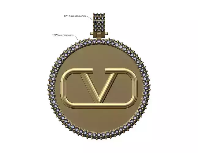 Large 40mm iced V logo Valentino pendant with bail 3D print model