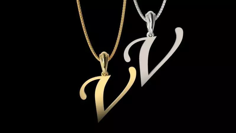 Letter V NECKLACE pendant 3D print model