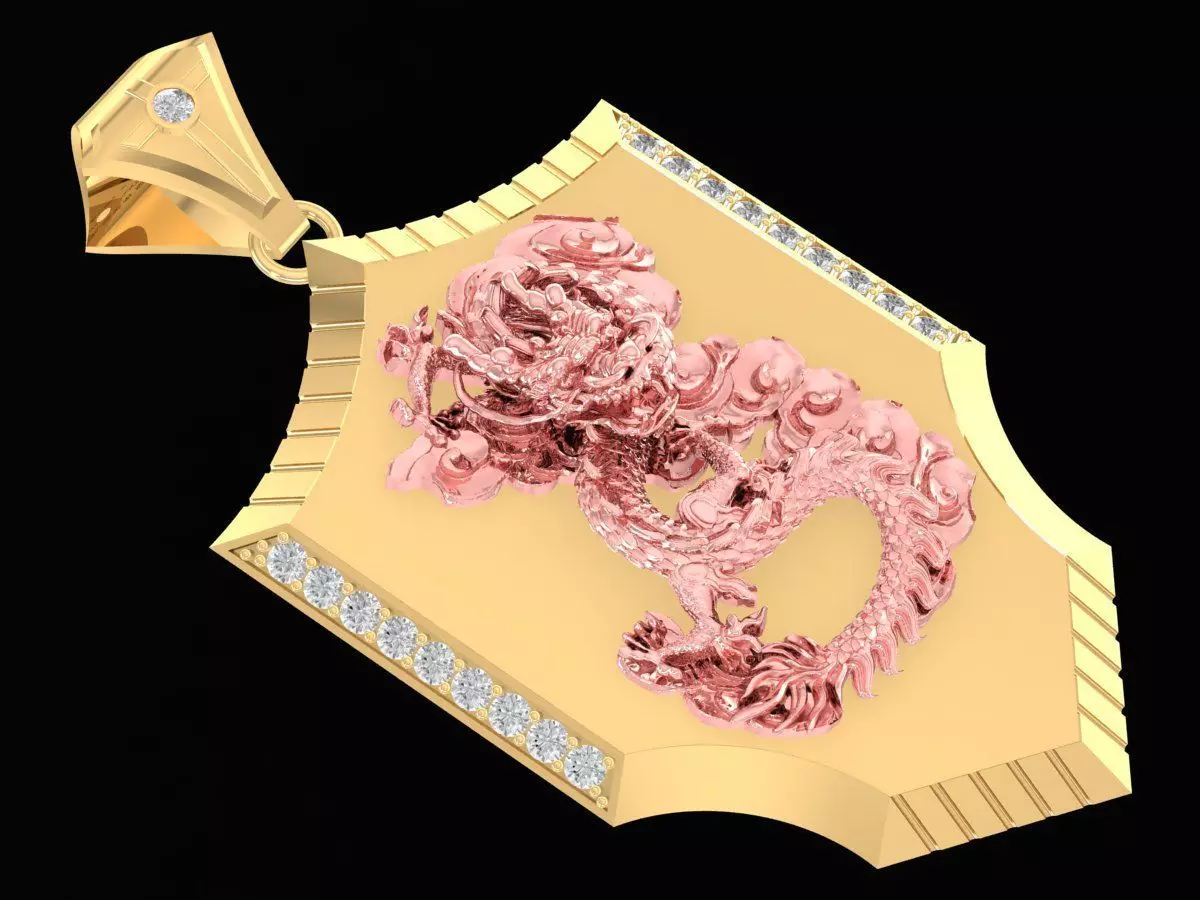This luxury Asian dragon shield pendant is a professionally designed 3D jewelry model inspired by traditional Eastern symbolism of strength, protection, authority, and prosperity. The dragon is sculpted in high relief on a shield-shaped base, creating a bold and powerful statement piece suitable for luxury, feng shui, and symbolic jewelry collections.