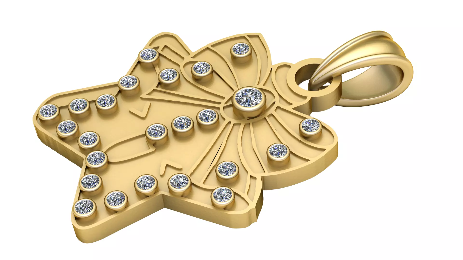 This exquisite butterfly pendant showcases a luxurious and elegant design crafted in polished gold. The pendant features a beautifully detailed butterfly shape with smooth engraved wing patterns that highlight the natural symmetry of the design. Brilliant round diamonds are bezel-set along the outer edges and at the center, adding exceptional sparkle and enhancing the graceful silhouette. The polished bail is designed for durability and smooth chain movement, making it ideal for everyday wear or special occasions. This pendant combines nature-inspired beauty with modern luxury, making it perfect for high-end jewelry collections, custom manufacturing, and premium CAD jewelry production.