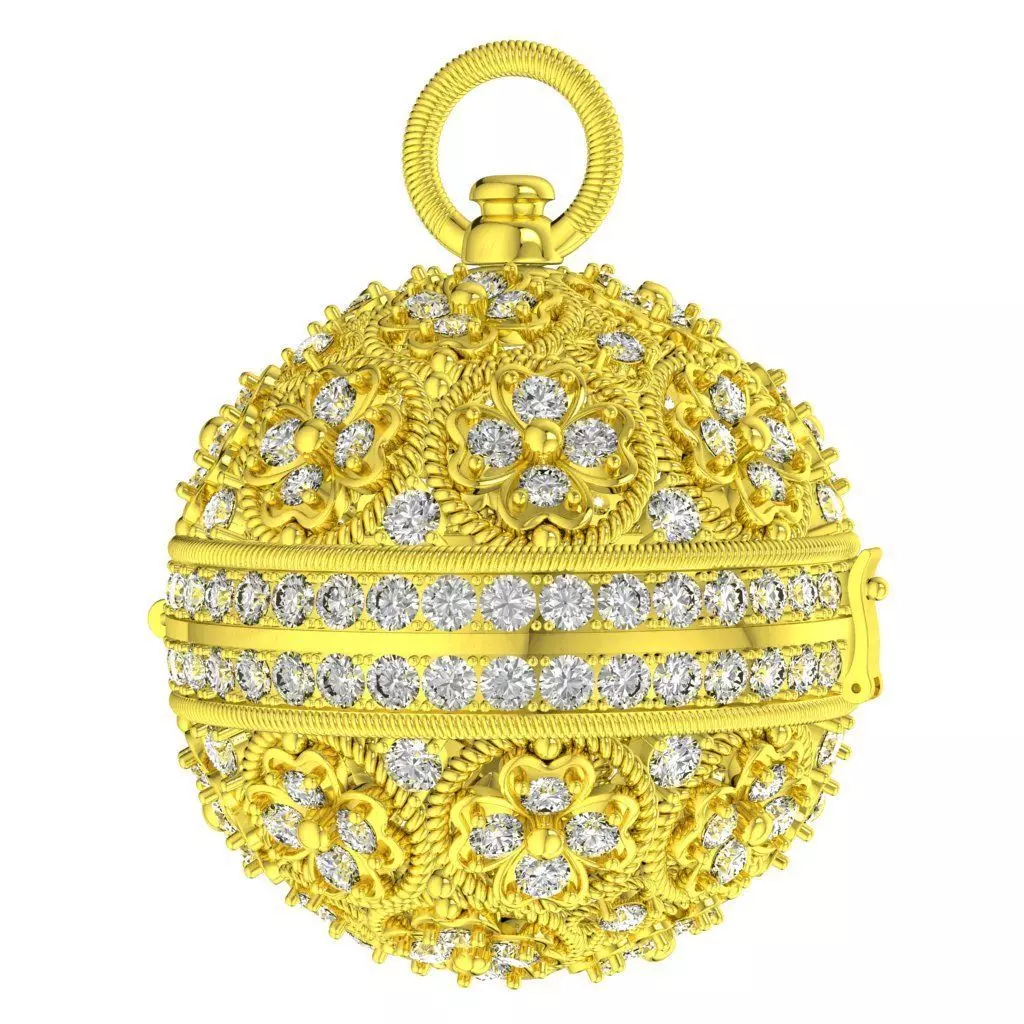 This luxury sphere pendant is designed in a refined four-leaf clover motif, symbolizing luck, prosperity, and protection. The exterior surface is richly decorated with clover-shaped patterns set with round diamonds, combined with intricate rope-style details that enhance depth and craftsmanship.