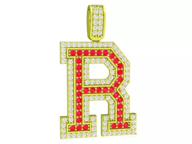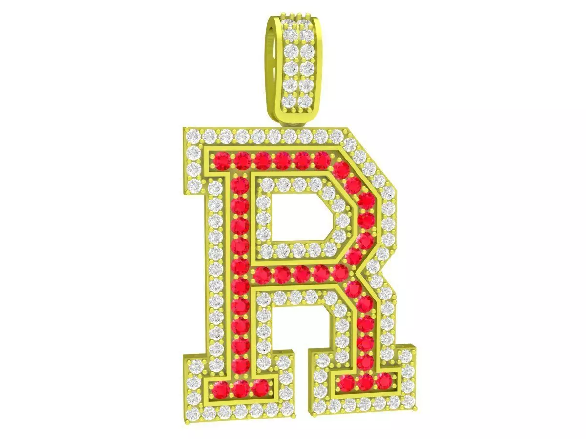 This luxury letter R pavé gemstone pendant is a bold and modern 3D jewelry design created for personalized and high-end jewelry collections. The pendant features a capital letter “R” with a clean geometric outline, fully accented with pavé-set gemstones that enhance brilliance and visual impact.