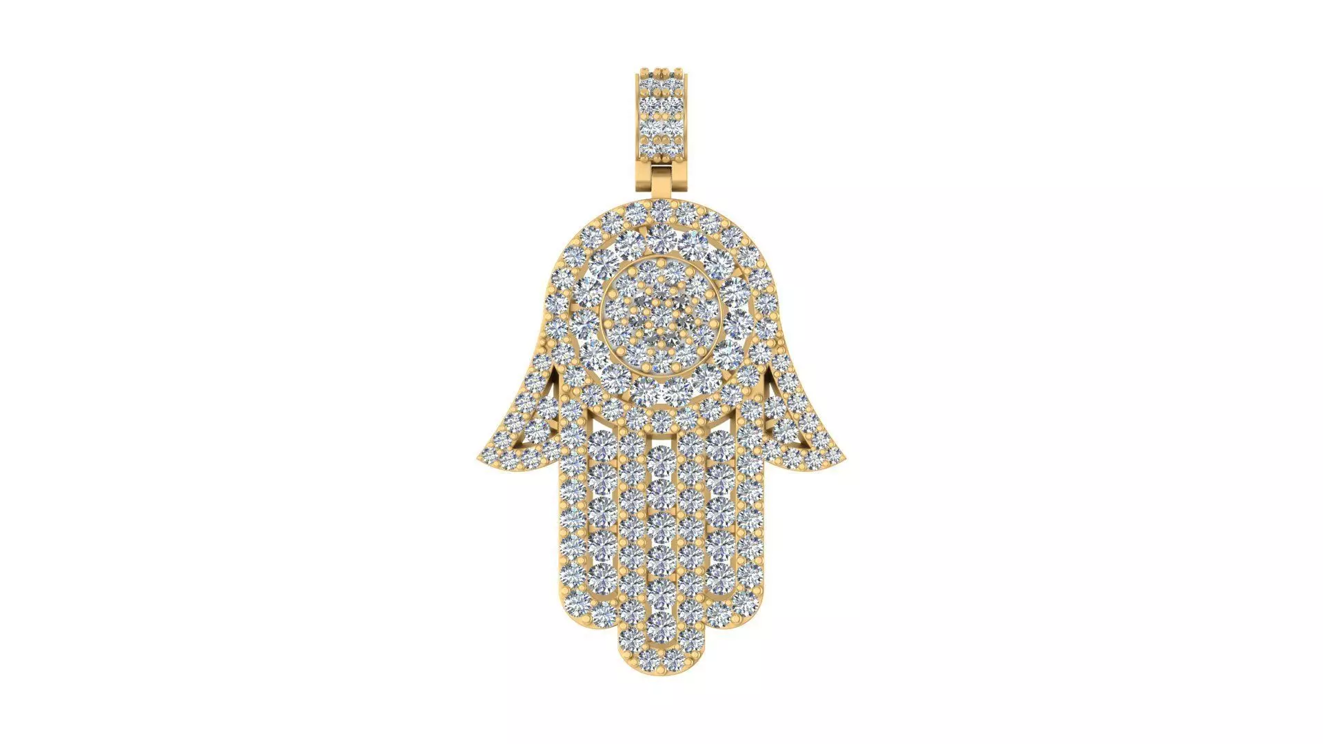 This exquisite pendant is adorned with fully pave-set diamonds or gemstones, giving it a luxurious and dazzling finish. Its intricate craftsmanship and elegant detailing make it a perfect statement piece for those who appreciate spiritual, cultural, and high-end jewelry.