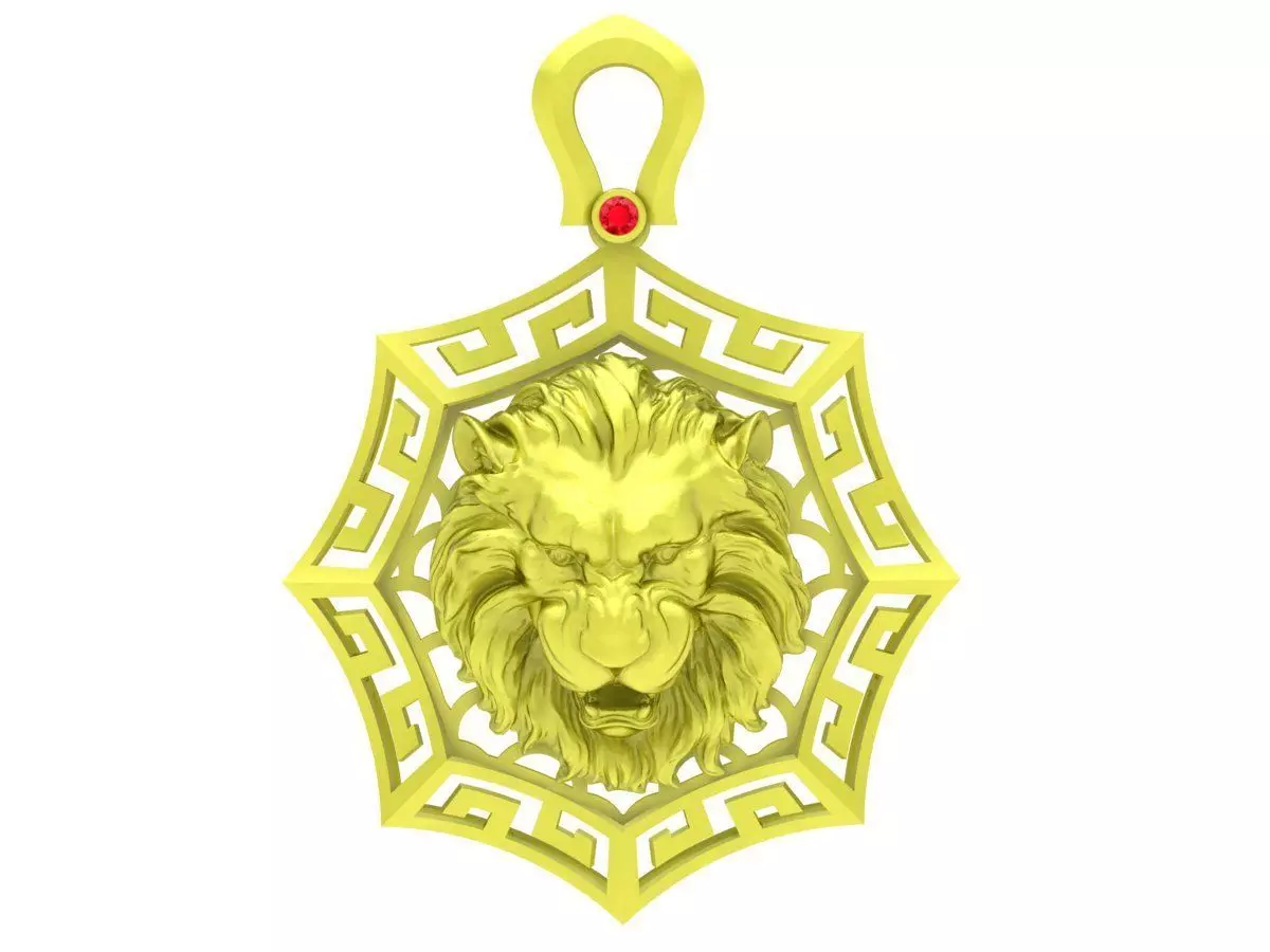 This premium 3D jewelry model features a luxury lion head pendant combined with a bold geometric frame design. The central lion head is sculpted in high relief, symbolizing strength, courage, leadership, and protection. Fine details on the mane and facial features create a powerful visual impact suitable for statement jewelry.