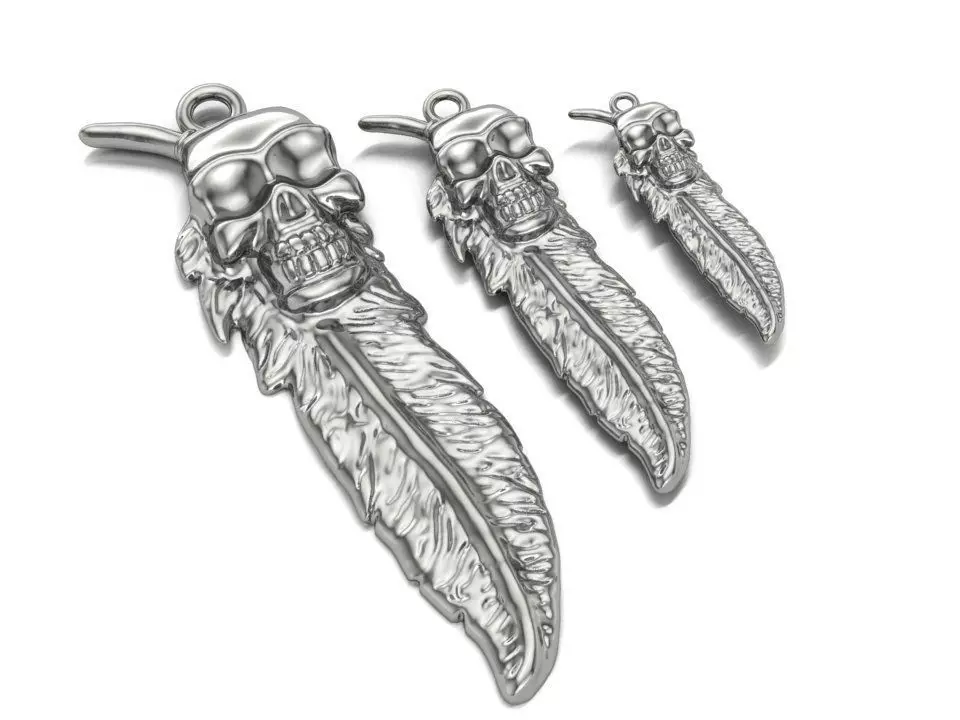 Introducing a unique and striking 3D model of a pendant that features an intricately designed skull at the top, symbolizing power and the mysteries of life and death. The bottom of the pendant is adorned with beautifully detailed feathers, representing freedom and the spirit of flight.