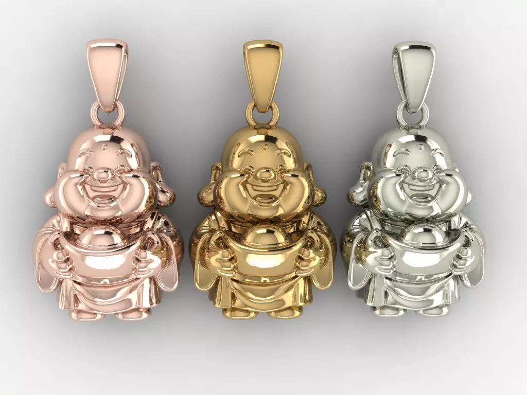 A delicate and compact Laughing Buddha pendant featuring a joyful expression symbolizing prosperity, happiness, and good fortune. Carefully proportioned with smooth, rounded surfaces, perfect for elegant jewelry pieces or premium charm collections.