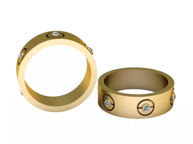 This elegant ring boasts a modern minimalist design with a luxurious twist. Crafted from rich yellow gold, it features a repeating pattern of precisely engraved circular motifs, each housing a sparkling white diamond at its center. The geometric symmetry and polished finish lend it a contemporary aesthetic, making it suitable for both men and women. Perfect as a wedding band, fashion statement, or personalized piece, this ring merges subtle artistry with timeless luxury.