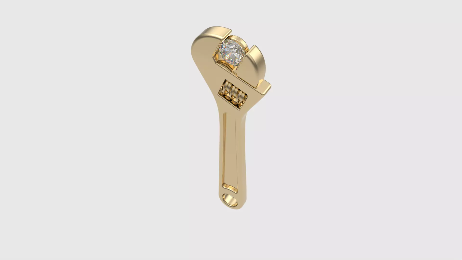Embrace the beauty of industrial design with this unique diamond-encrusted wrench pendant. The intricately detailed wrench design, crafted from high-quality white gold, is adorned with a brilliant-cut diamond that adds a touch of sparkle and elegance. The realistic adjustable mechanism enhances the authenticity of the design. Ideal for both special occasions and everyday wear, this pendant is a versatile addition to any jewelry collection, perfect for those who appreciate unconventional and bold fashion statements.