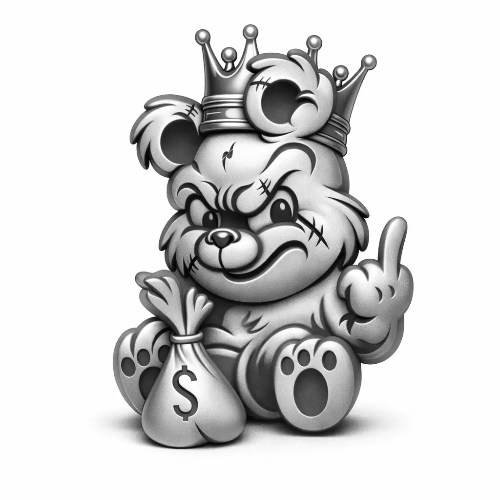 This Money King Bear Pendant 3D model showcases a cute but powerful bear character wearing a crown and holding a money bag, symbolizing wealth, success, and boss energy. The playful expression combined with royal elements makes this design perfect for hip hop, rapper, and luxury-themed jewelry collections.