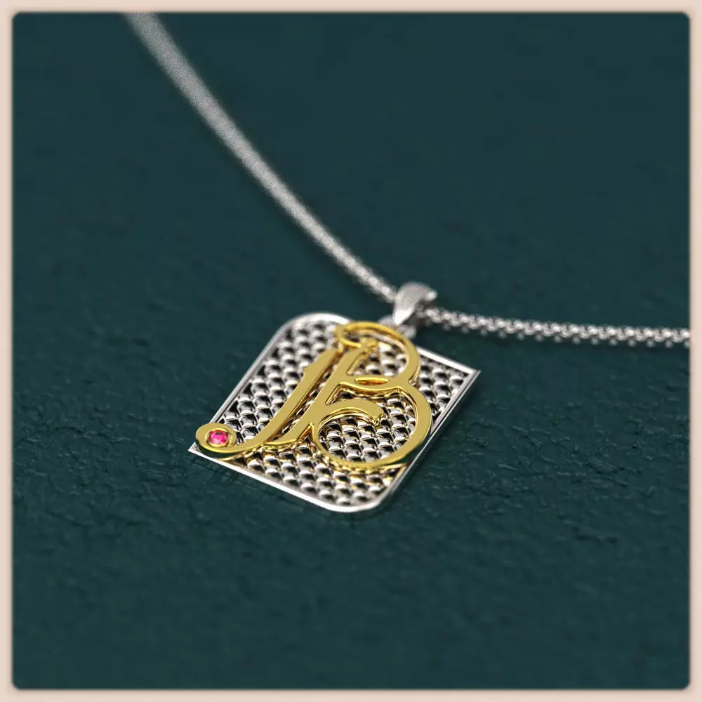 Jewelry monogram pendant with diamond 1.5mm.Letters JB16.40mm*18.40mm*2.2mm.Gold 18K-5.30gGold 14K-4.58gGold 10K-4.10gSilver sterling-3.50g