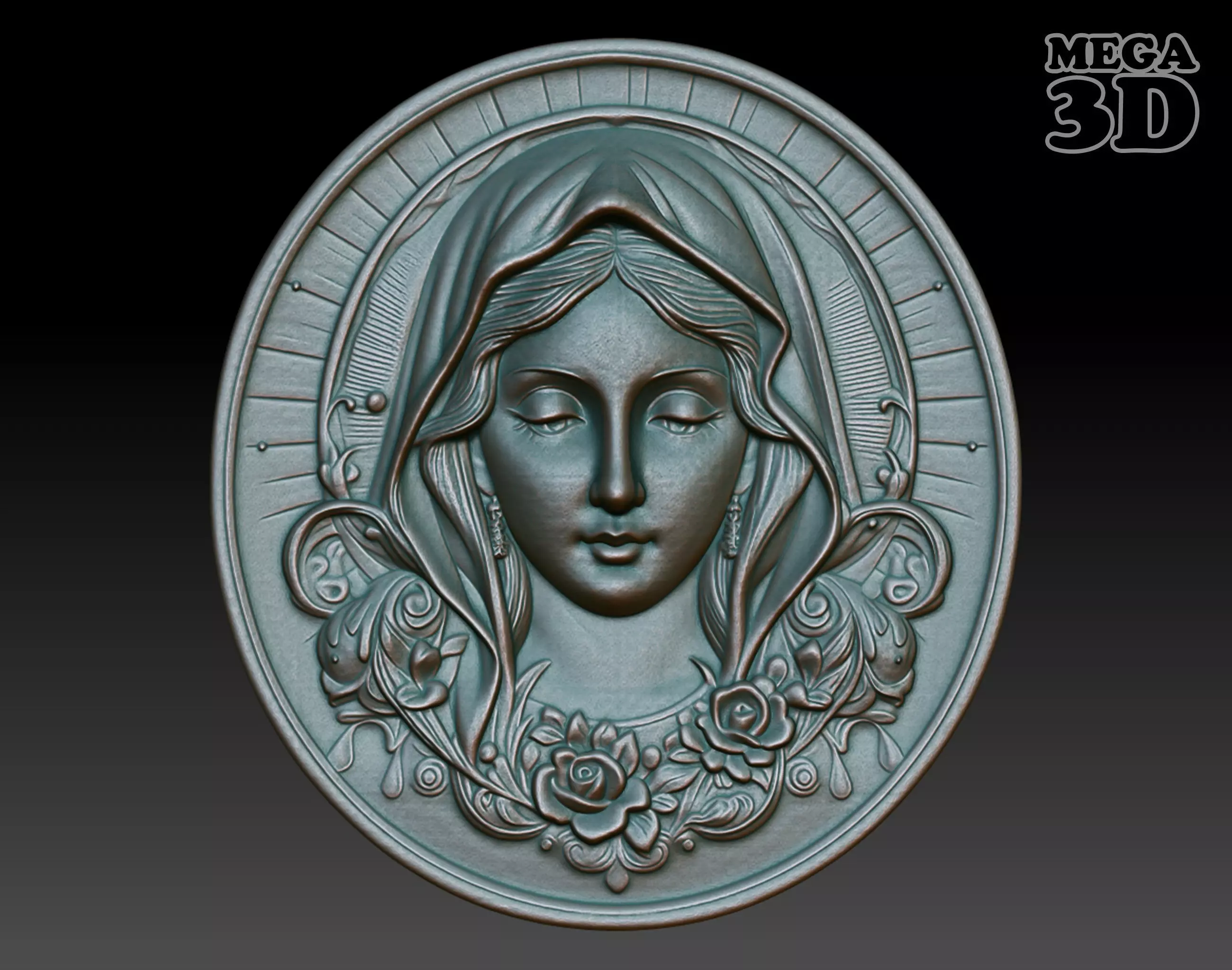 virgin, mary, saint, maria, religious, christian, mother, pendant, medal, necklace, cnc, printing, relief, decor, milling, jewelry, artcam, art, engraving, carved, basrelief, woodworking, walldecor, sculptures