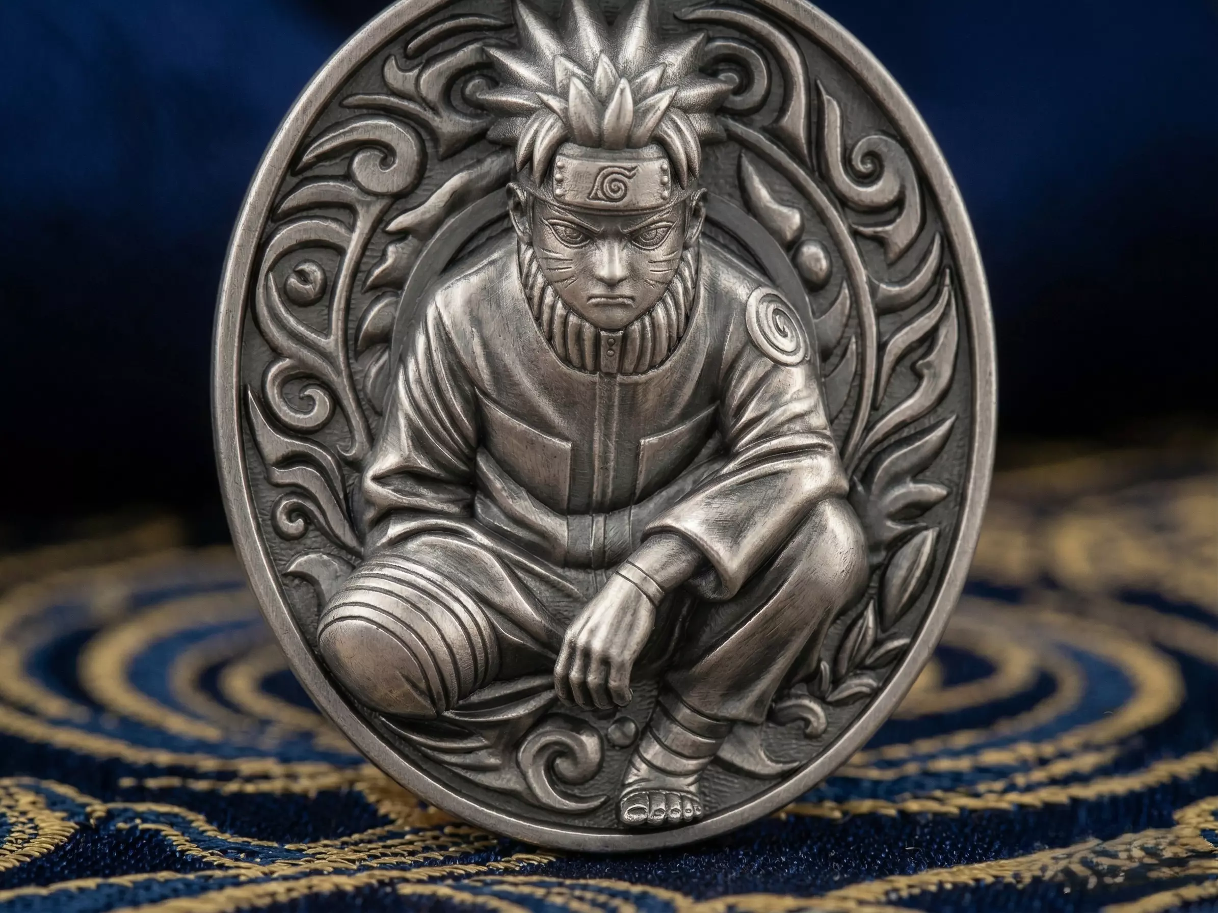 Celebrate the journey of the Seventh Hokage with this Naruto Uzumaki Shinobi Medallion. This design features a focused, battle-ready Naruto set against a backdrop of traditional Japanese swirling patterns that evoke both the Uzumaki clan crest and the energy of the Nine-Tails. It is a powerful, narrative piece designed to be a centerpiece in any anime-inspired luxury collection.