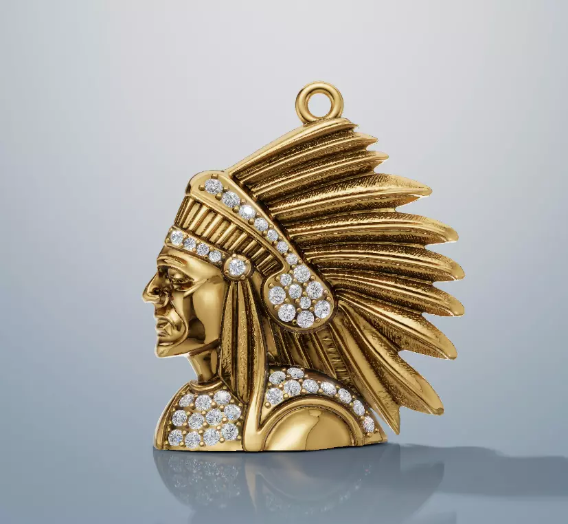 This is a high-quality Native American face pendant 3D model, created for jewelry production, 3D printing, and casting. The design features a detailed and expressive sculpt inspired by Native American heritage, symbolizing strength, tradition, and connection to nature.