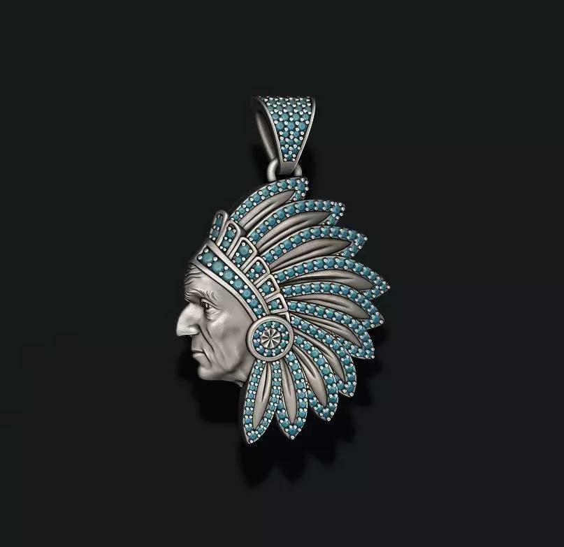 Native American Indian man pendant with gems 3D print model