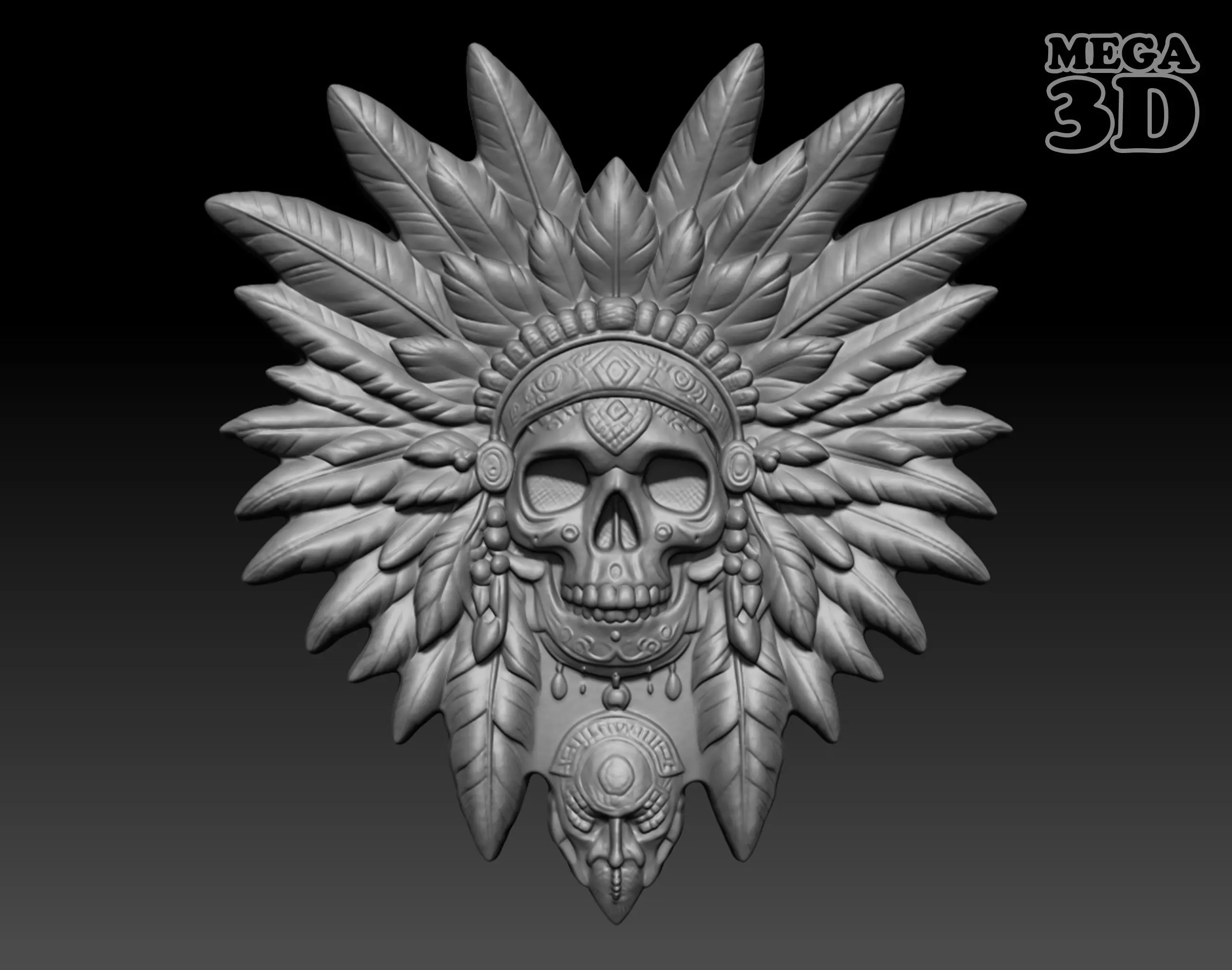 Native Skull basrelief 240517 04 3D print model
