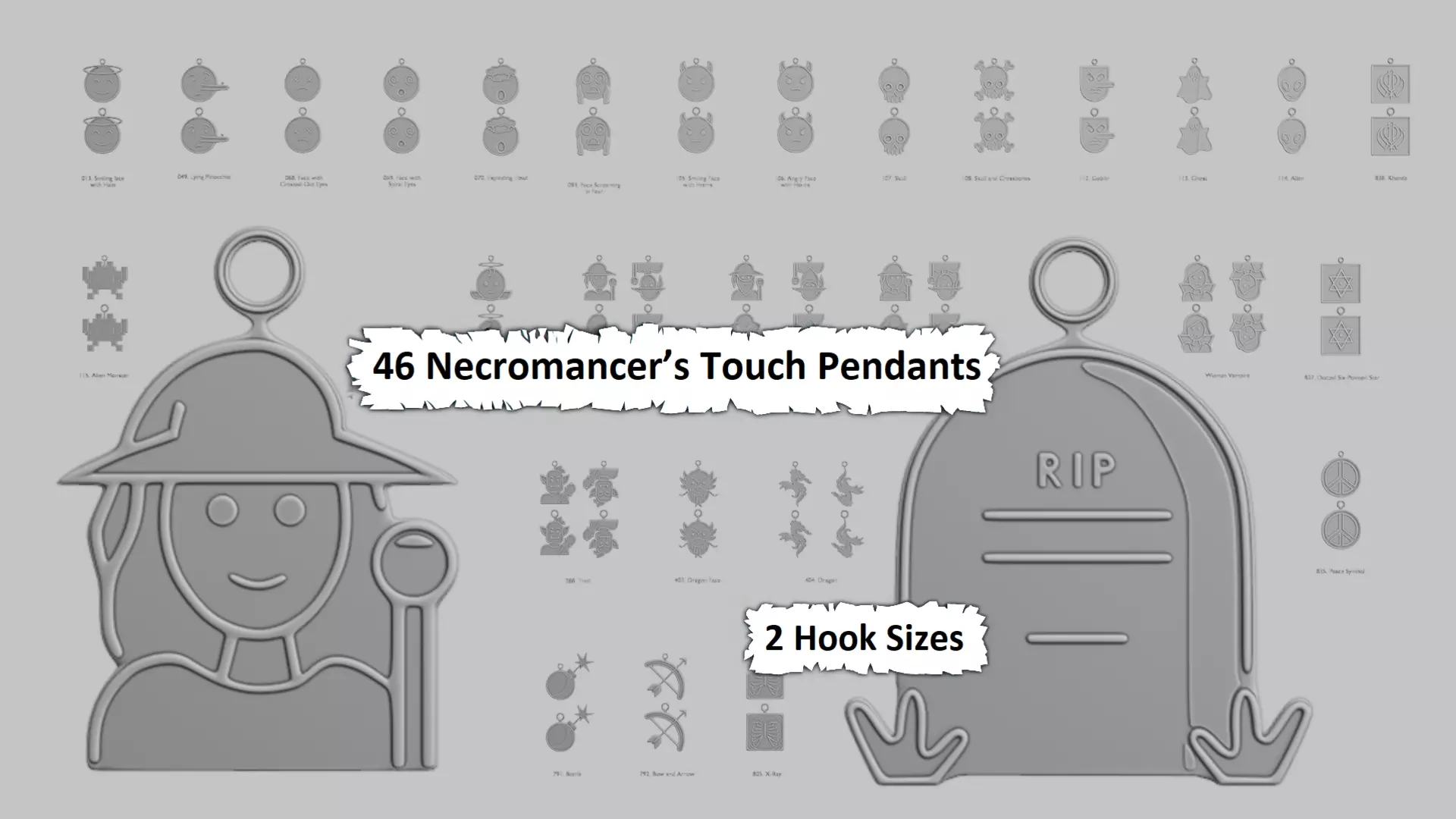 Enter the arcane world of skulls, spells, and spooky vibes with this mystical pendant set, ideal for necklaces, keychains, cosplay accessories, or summoning snacks. Each pendant comes with two hook size variations, crafted in Original Blend and exported to STL, fully ready to print.