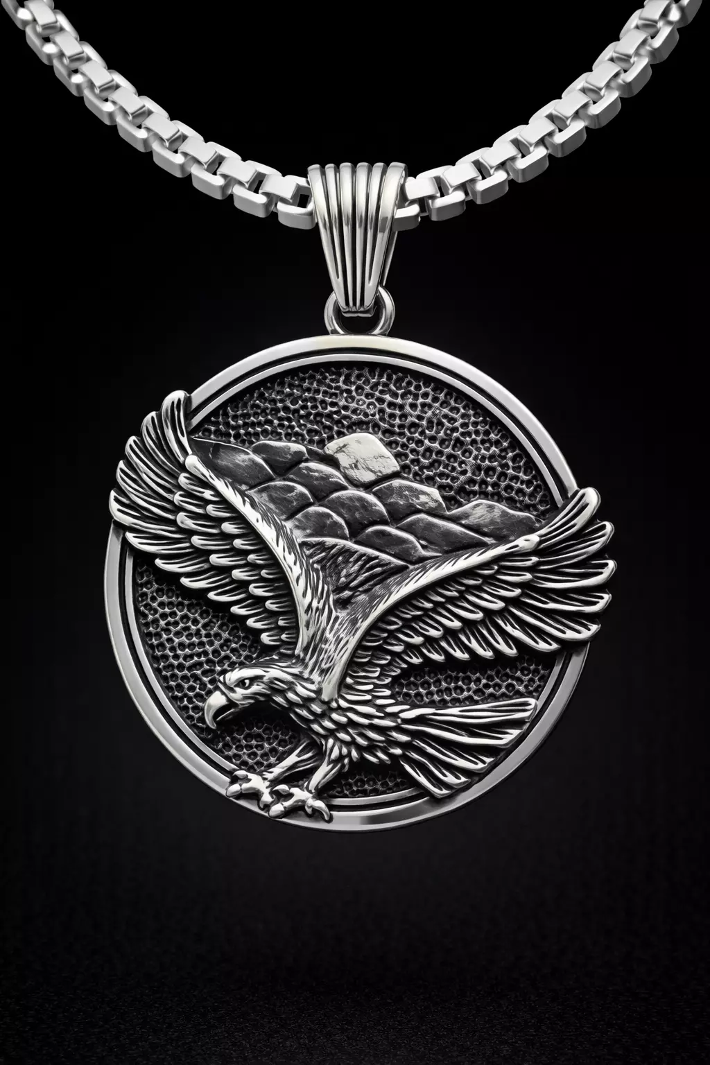 Capture the spirit of freedom with this Majestic Soaring Eagle Medallion. This expertly sculpted 3D relief model depicts a powerful eagle in flight against a rugged mountain backdrop. The design features a sophisticated hammered honeycomb texture in the background to provide a stunning contrast against the polished high-relief eagle and mountains. Perfectly optimized for jewelry manufacturers and digital artists, this model is ready to be transformed into a high-end pendant or commemorative coin.