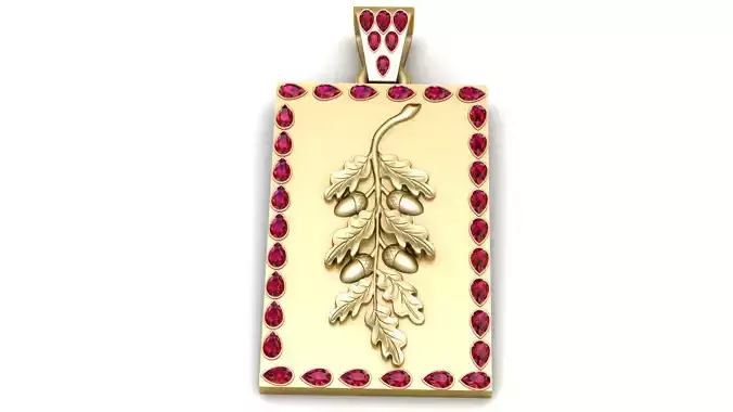 This elegant 3D printable Oak Branch and Acorn Pendant captures the essence of nature with a beautifully detailed oak branch adorned with acorns. Surrounded by a border of ruby-like gemstones, this pendant exudes sophistication while celebrating the timeless beauty of oak trees. The golden finish and intricate detailing on both the leaves and acorns make this pendant a perfect addition to any nature-inspired jewelry collection.