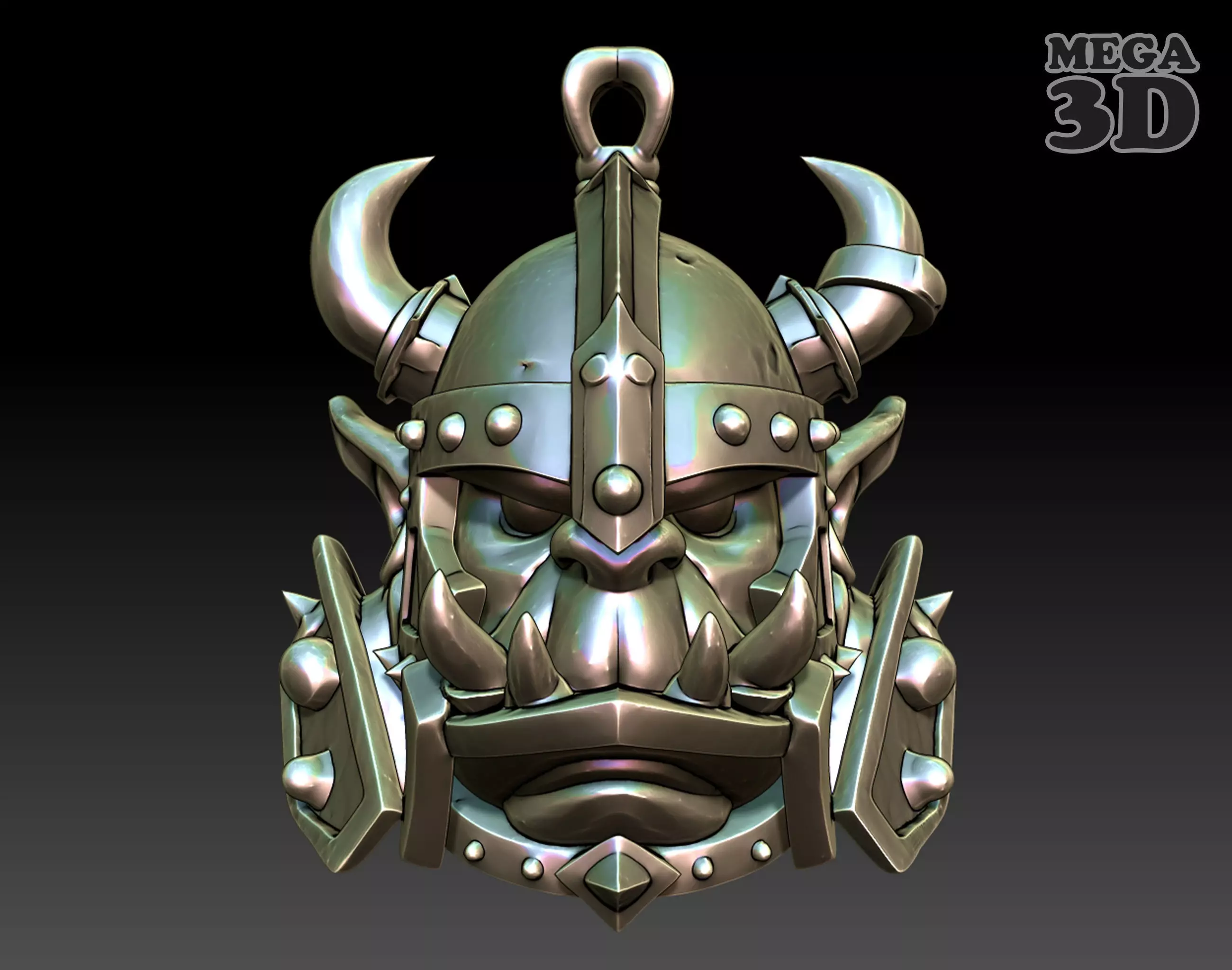 skull, orc, pendant, badge, CNC engraving, CNC file, pendant stl, badge stl, orc pendant stl, orc badge stl, fantasy, warhammer, warhammer-4k