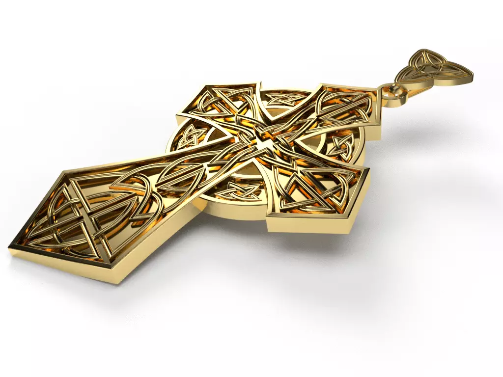 High-quality ornate Celtic cross pendant featuring intricate knotwork and traditional Trinity knot symbolism. The design incorporates interwoven Celtic patterns representing eternity, unity, and spiritual balance, enhanced by a central circular motif and triquetra detail.