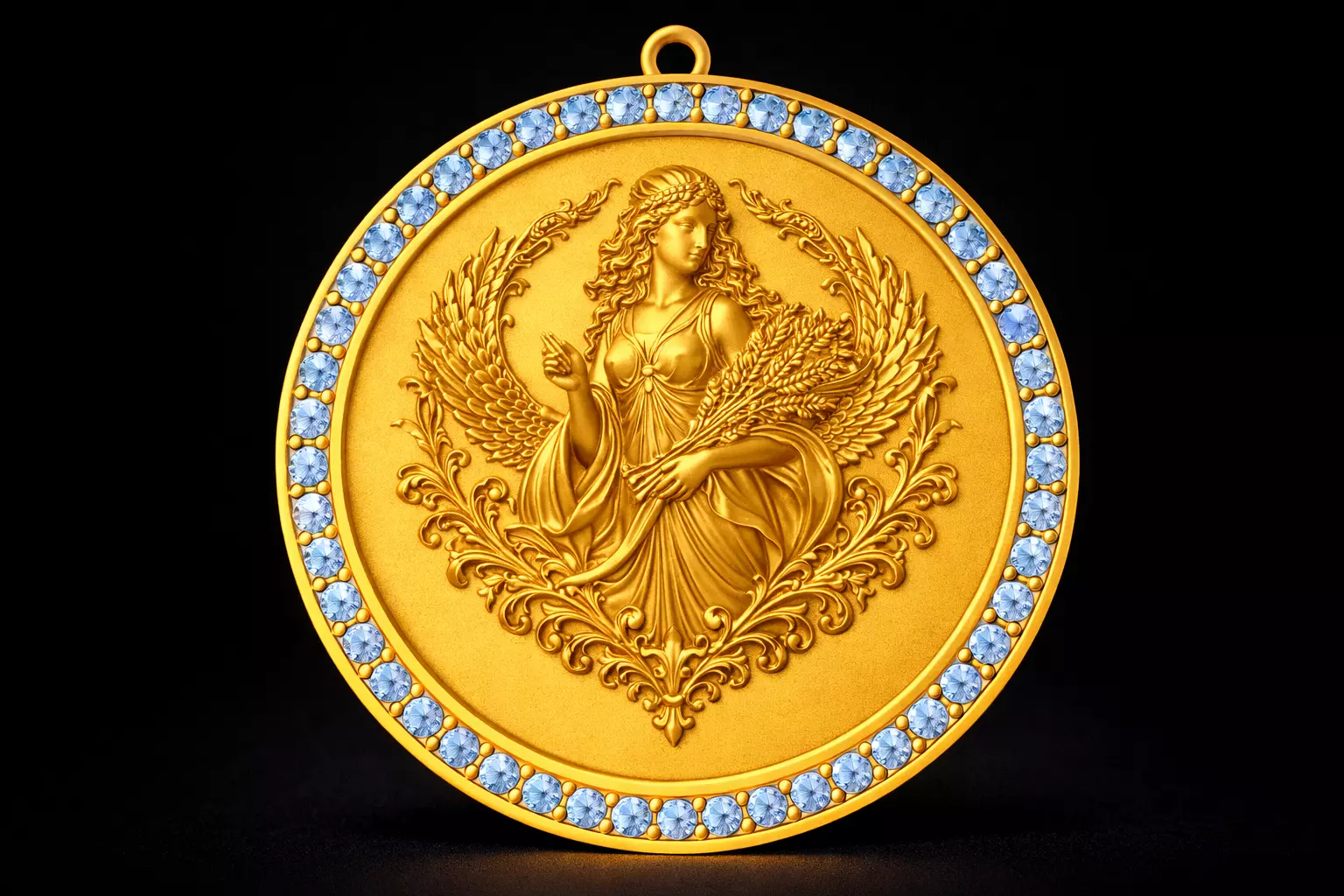 1 – Catalog DescriptionThis is a detailed Virgo zodiac gemstone pendant designed as a wearable jewelry model and optimized for professional manufacturing.The model is ready for 3D printing and casting, with precise gemstone placement, dimensions, and surface quality clearly presented.