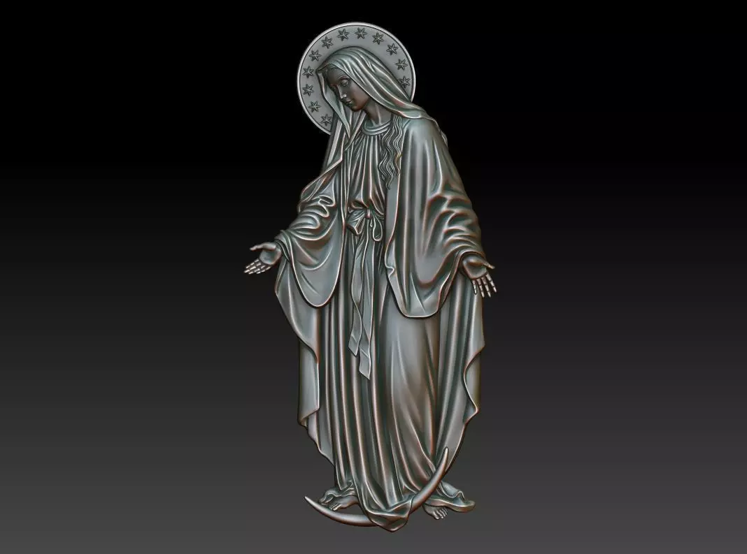 3d model Our Lady Immacuiate (Virgin Mary) in high-detail 3D relief Suitable for CNC milling and 3D printing STL format, scalable to any size Compatible with ArtCAM, Rhinoceros, 3ds Max Ideal for religious souvenirs, furniture, jewelry, and interior décor This versatile model is a valuable tool for anyone looking to create beautiful, precise religious designs across a wide range of applications.